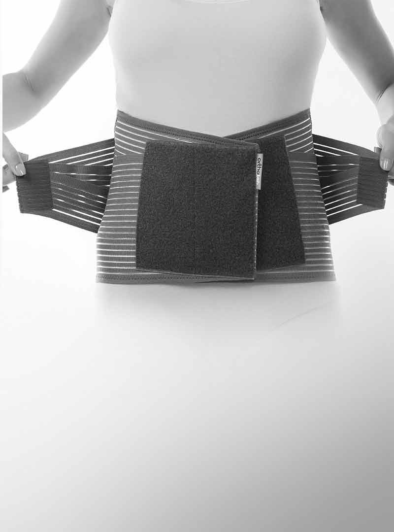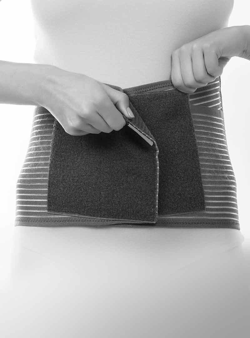 1. Помістіть Back Brace Extra Max на талію. Зверніть увагу, що середня смужка лежить прямо по краю корінця.