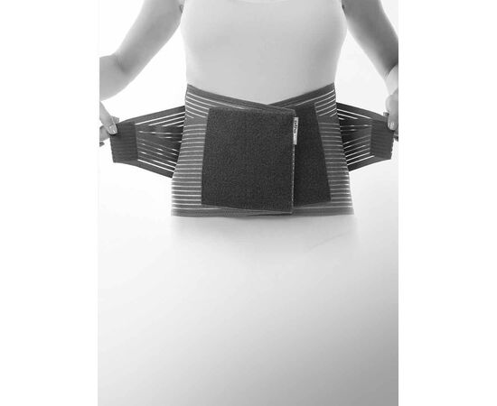 Бандаж для жорсткої фіксації спини Extra Max від Orthoteh стабілізує всю нижню частину спини. Він сконструйований так, щоб закріпити задню частину в області талії і містить шість металевих стрижнів з максимальною стійкістю. Їх можна формувати відповідно до особливостей тіла. Стабілізація боків забезпечується за рахунок підвищеної пружної компресії. Цей задній бандаж зручний для використання сидячи або стоячи, що робить його добре підходящим для використання на робочому місці та вдома. Потрійні смужки для додаткового кріплення щільно та зручно фіксують Back Brace Extra Max на місці. Тканина виробу не викликає алергії, добре вентилюється, має антимікробне покриття. Бандаж для жорсткої фіксації спини Extra Max має високий ступінь стабілізації.