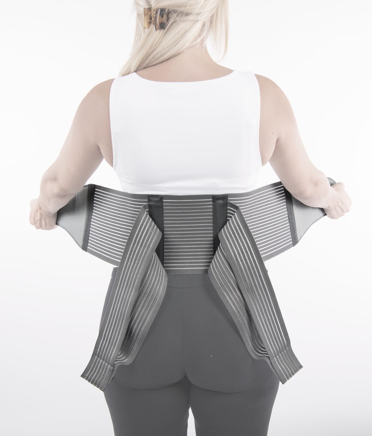 - Расположите изделие на теле так, чтобы средняя полоска была точно по оси позвоночника.