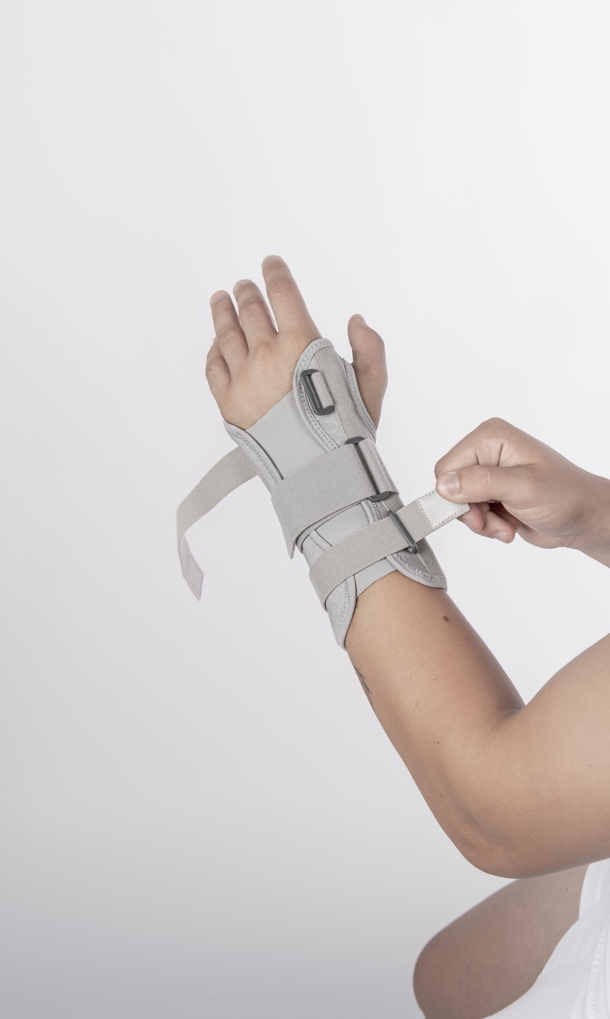 Ортез на запястье и предплечье от Orthoteh стабилизирует и защищает эту область. Он содержит металлическую пластину заданной анатомической формы. Металлическую пластину можно формировать по индивидуальным контурам области запястья. Внимание! Это делает только медицинский специалист.