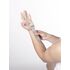 - Расположите ортез так, чтобы большой палец проходил через предусмотренное для него отверстие, и сначала закрепите более широкую среднюю застежку. Расположите ее прямо на запястье.