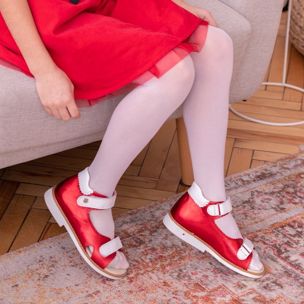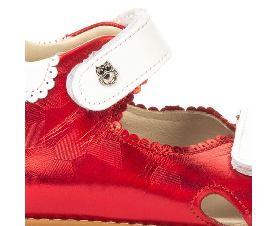 Босоножки Theo Leo 1205 для девочки выполнены из натуральной кожи красного цвета с интересным перфорированным краем. Украшены выразительными белыми застежками липучками.