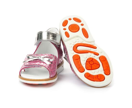 Босоножки оснащены стелькой с анатомическим супинатором и подкладкой из натуральной кожи. С помощью двух надежных липучек можно отрегулировать полноту ножки и ребенок сможет легко надевать обувь, надежно фиксировать ее на ноге и также легко снимать.