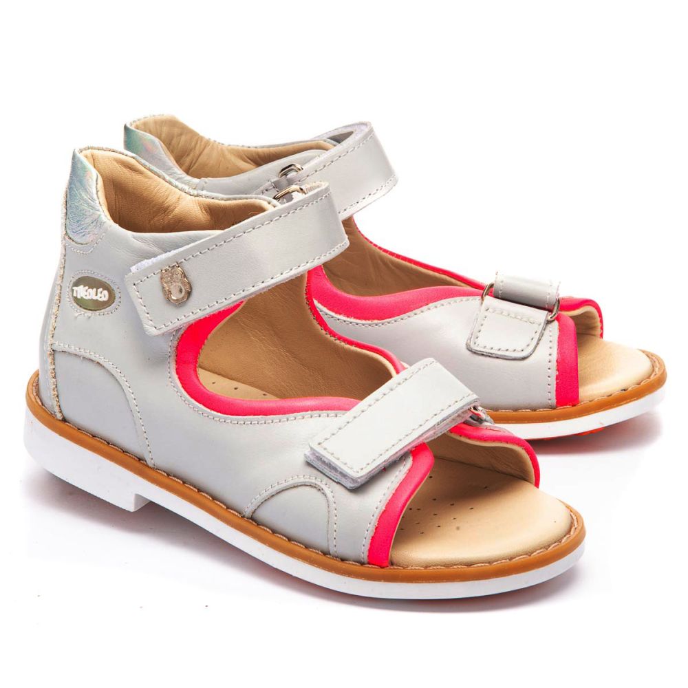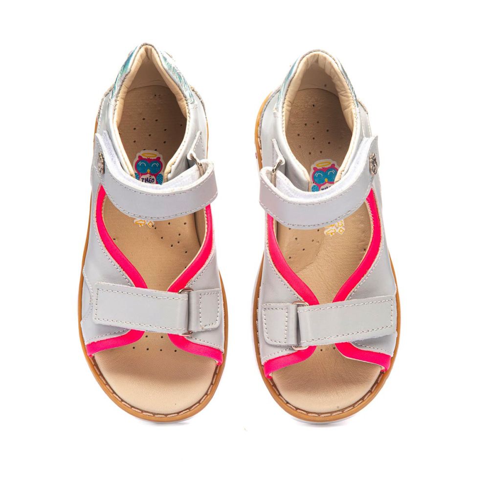 Босоножки Theo Leo 1221 для девочки выполнены из натуральной кожи серого цвета с красивой розовой окантовкой. Сандалии имеют удобные застежки-липучки.