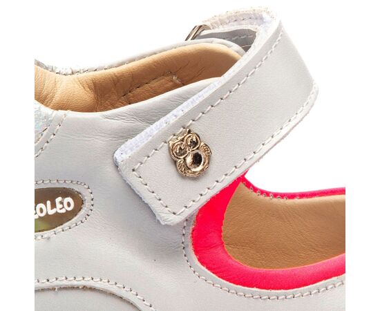 Босоножки оснащены стелькой с анатомическим супинатором и подкладкой из натуральной кожи. С помощью двух надежных липучек можно отрегулировать полноту ножки и ребенок сможет легко надевать обувь, надежно фиксировать ее на ноге и также легко снимать.