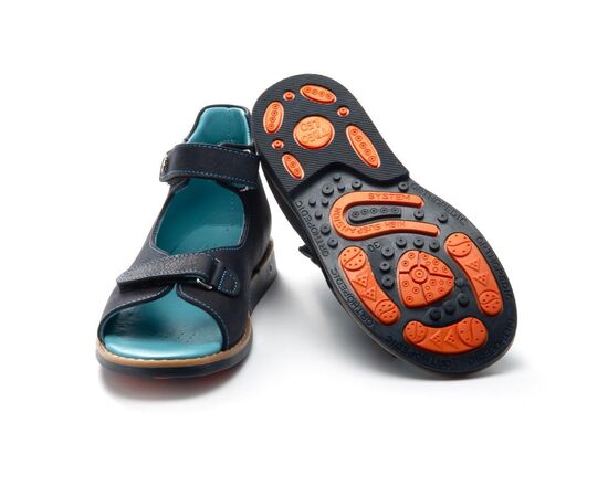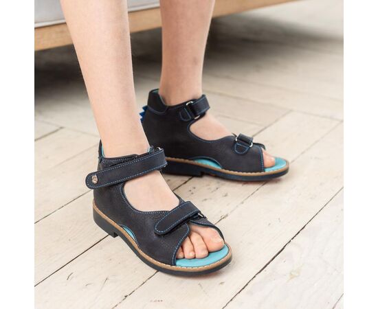 Профилактические босоножки 1094 для мальчика из натуральной кожии синего цвета. Фиксируются на ноге с помощью двух липучек. Стелька и подкладка – натуральная кожа.