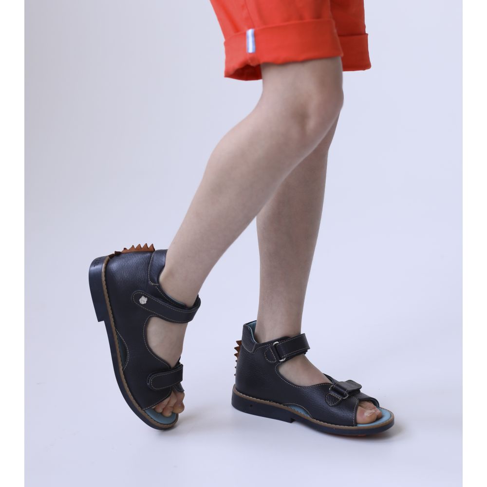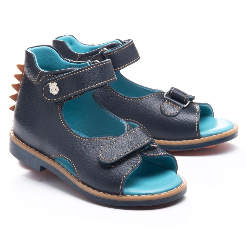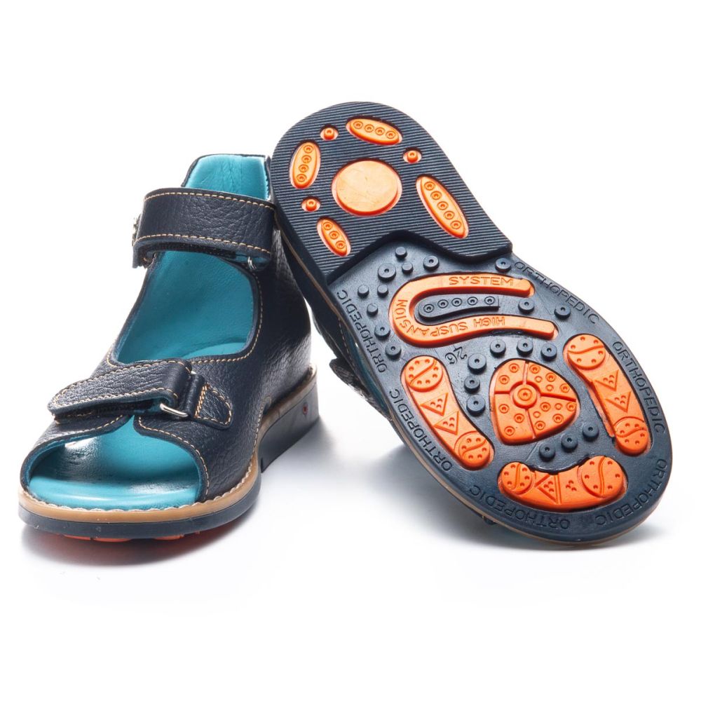 Профилактические босоножки 1114 для мальчика из натуральной кожии синего цвета. Фиксируются на ноге с помощью двух липучек. Стелька и подкладка – натуральная кожа.