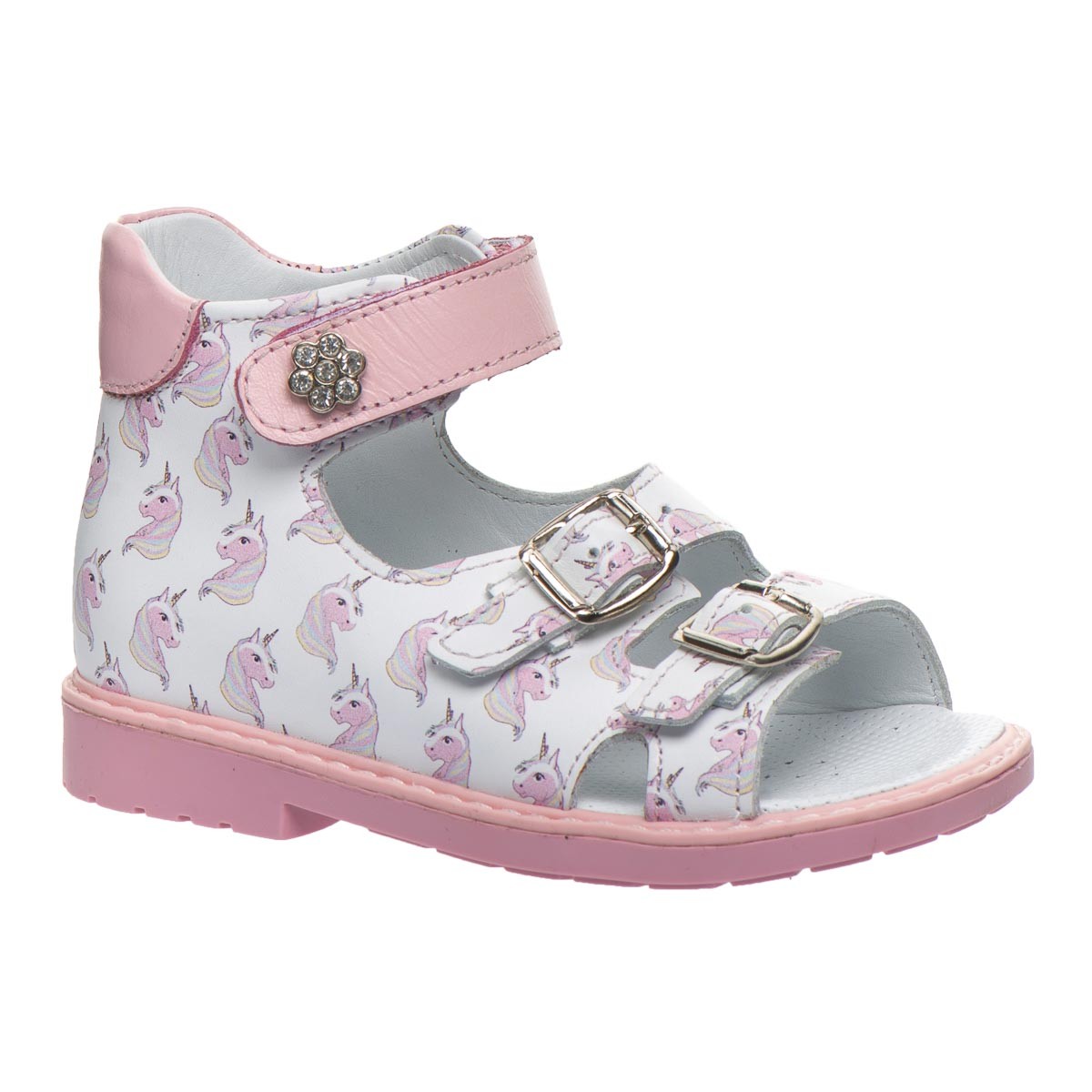 Босоножки ортопедические для девочки, белый/розовый единорог (арт. LEO-S687 WH-UNI), Theo Leo (Турция)