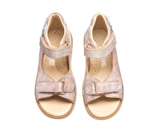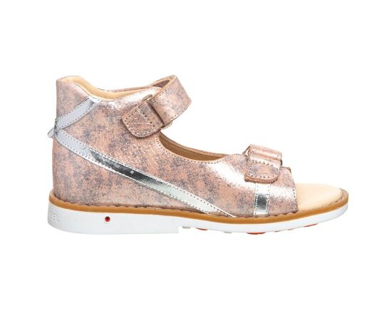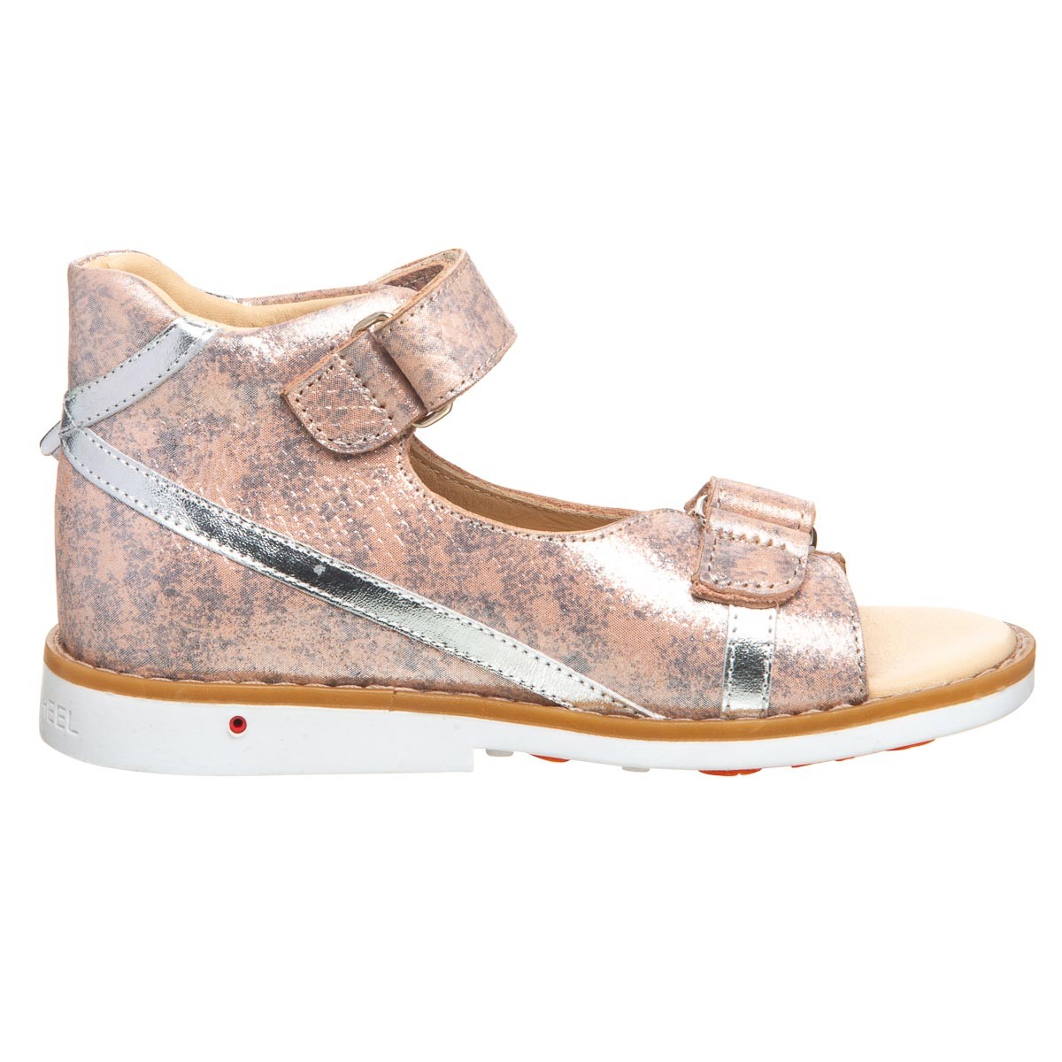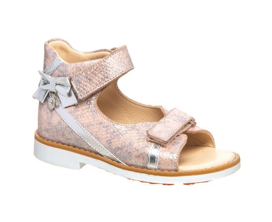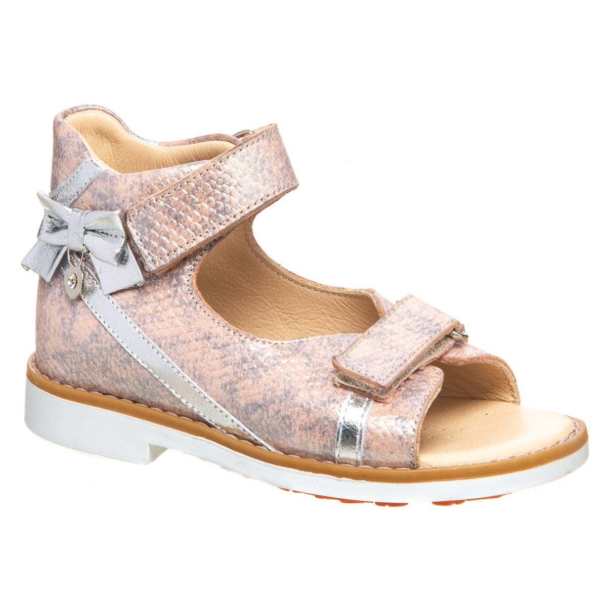 THEO LEO 0077 - нарядные босоножки для девочки, украшены серебристым бантиком сзади. Выполнены из натуральной кожи. Подкладка и стелька с анатомическим супинатором - натуральная кожа. Одеваются и фиксируются на ножке с помощью двух липучек. Подошва - термопластиковая резина.