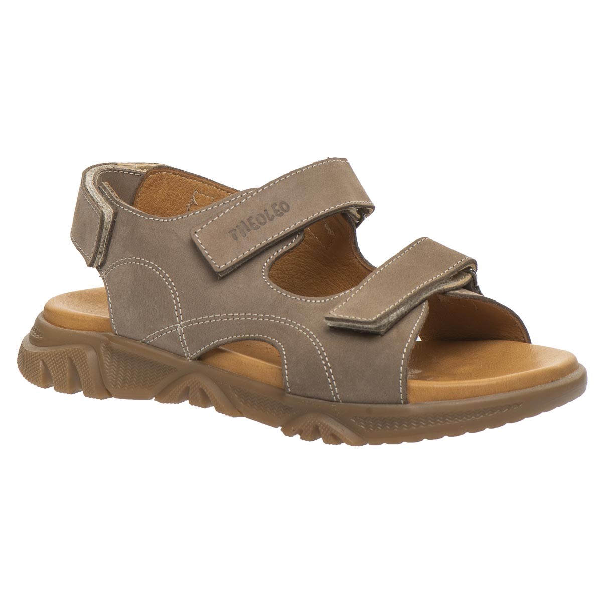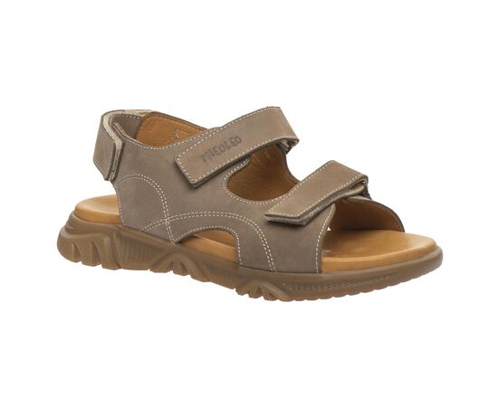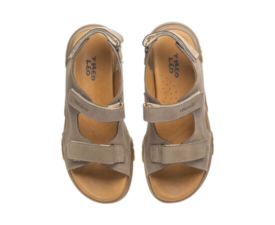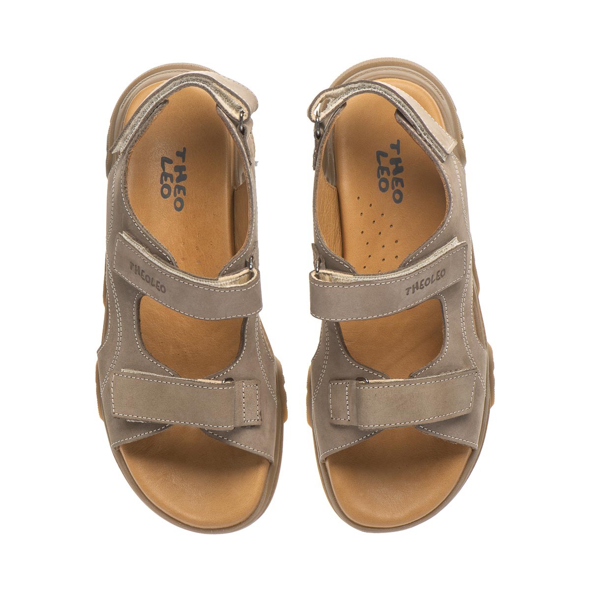 Theo Leo 3141 актуальная модель босоножек гармонично сочетает в себе высочайшее качество, комфорт и стильный дизайн. Максимально открытые и комфортные детские босоножки созданы для активных незабываемых летних прогулок. Босоножки для мальчика изготовлены из натурального нубука серого цвета, перфорированная кожаная стелька поддерживает естественную вентиляцию, акцентом является подошва, которая имеет цвет в тон кожи. Способ застегивания - надежные липучки. Детская обувь отшивается с заботой о комфорте детских стоп.