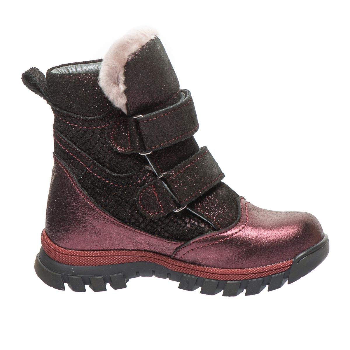Зимние ботинки для девочки имеют жесткий задник, супинатор и анатомически правильную стельку.