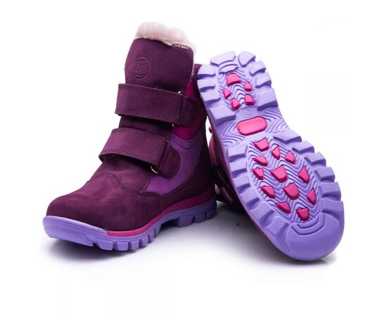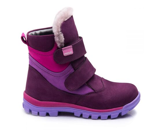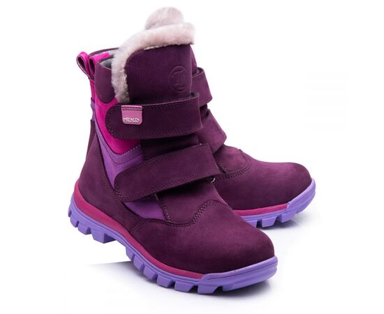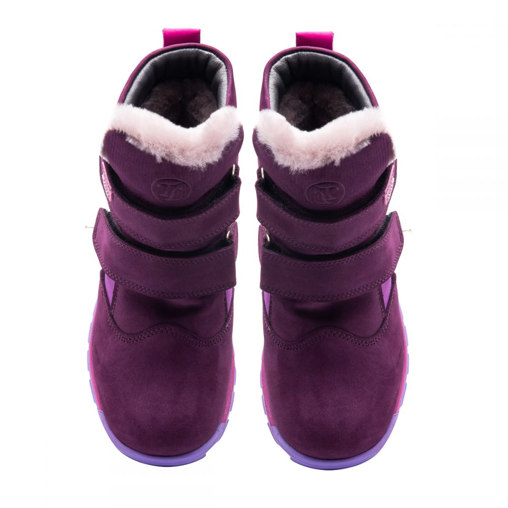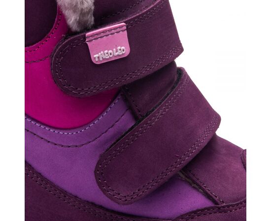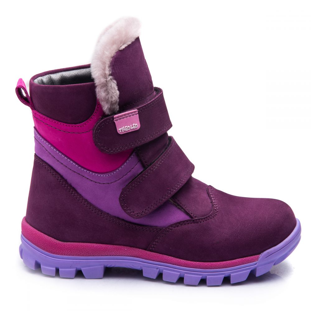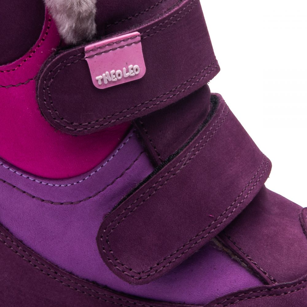 Theo Leo 849 - яркие зимние ботинки для девочки из натурального нубука сиренево цвета с розовыми и светло-сиреневыми вставками. Обувь надежно фиксируется на ноге с помощью 2х липучек, на контрастной рифленой подошве фиолетово-розового цвета. Внутри - натуральный мех. В обуви супинатор и анатомическая стелька. Подошва – термопластиковая резина, не скользит и хорошо амортизирует. Модель станет украшением зимнего гардероба маленькой модницы.