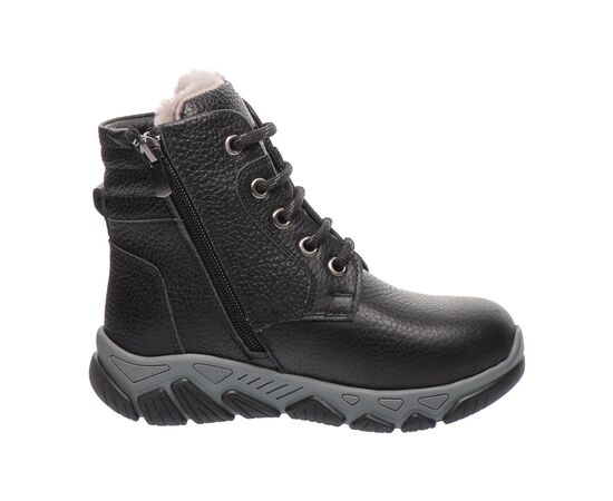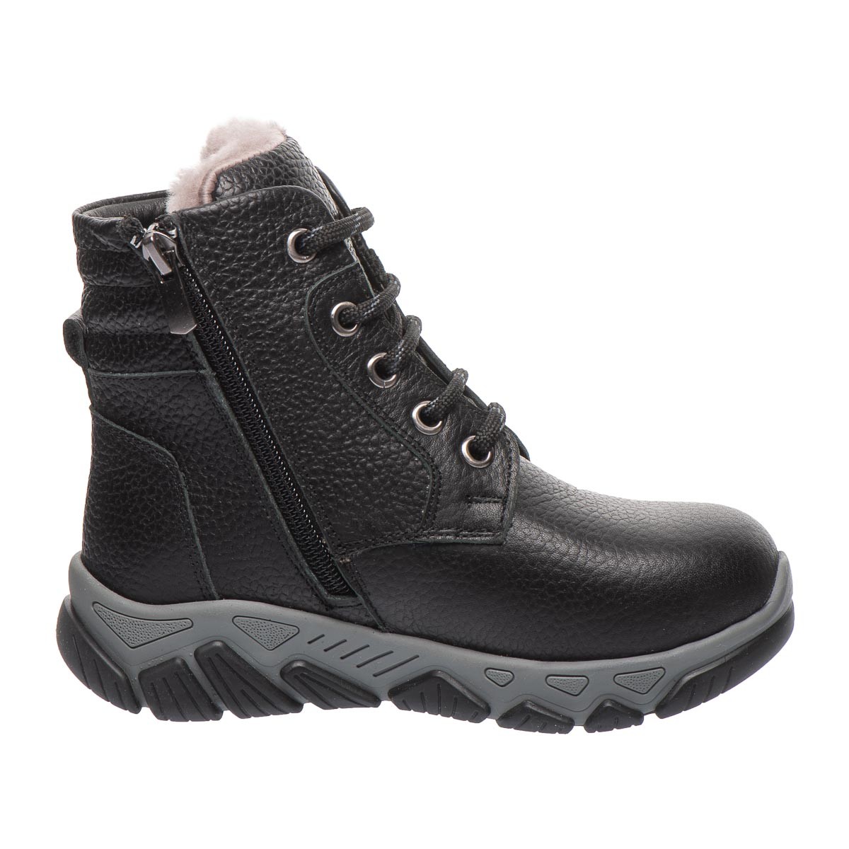 Theo Leo 615423 мега комфортні та стильні зимові черевики мають гарний дизайн та задають характер. Дитячі зимові черевики пошиті з натуральної шкіри класичного чорного кольору, всередині утеплені натуральною цигейкою. В якості застібки в моделі використовується бокова блискавка для пришвидшення взування, яка для кращої фіксації ніжки доповнена шнурівкою.