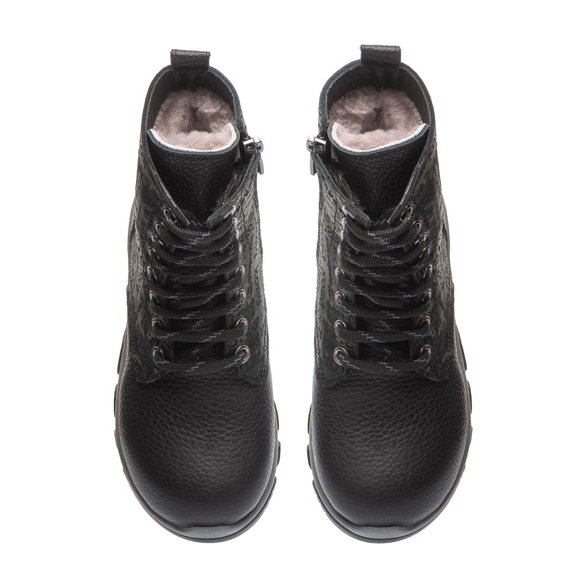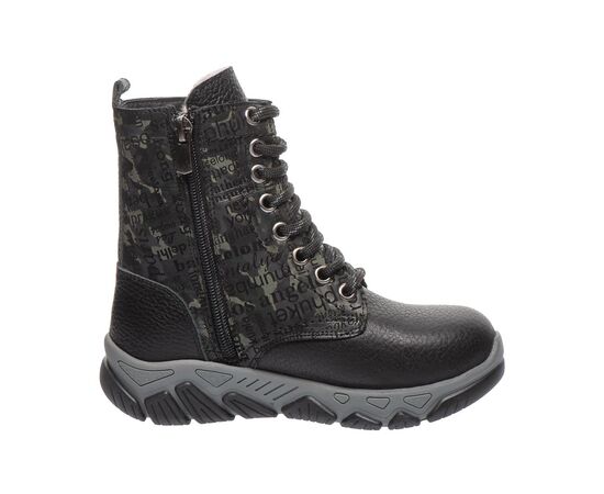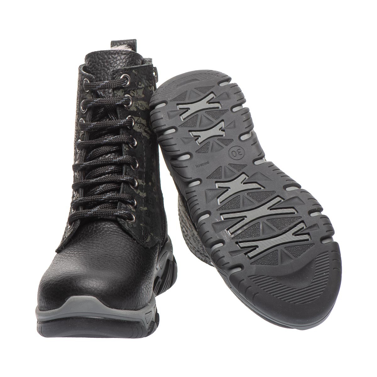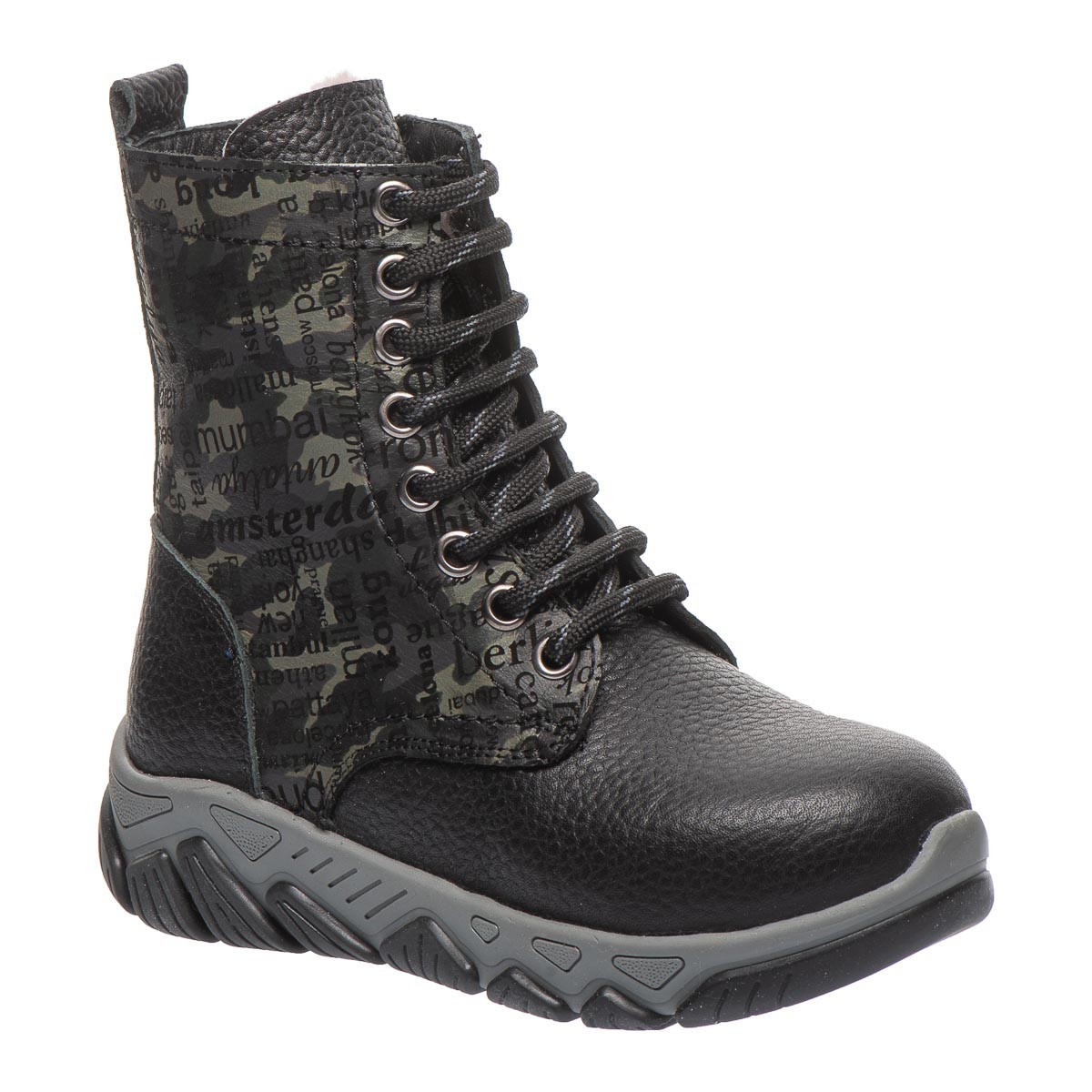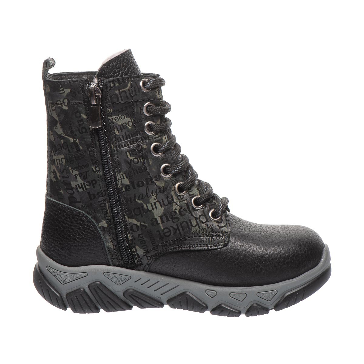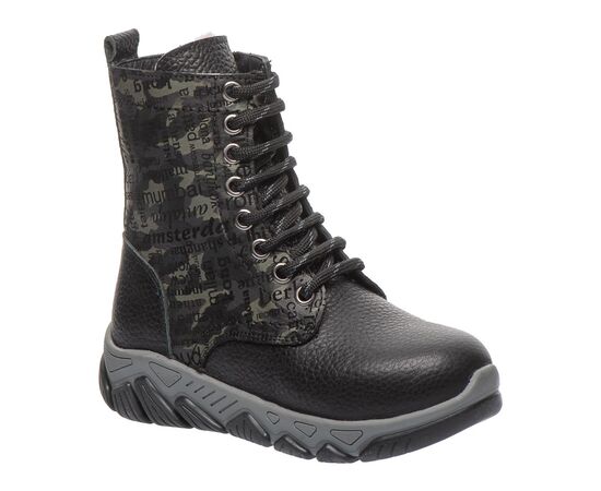 Theo Leo 616423 мега комфортні та стильні зимові черевики мають гарний дизайн та задають характер. Дитячі зимові черевики пошиті з натуральної шкіри класичного чорного кольору з оздобленням вставкою хакі, всередині утеплені натуральною цигейкою. В якості застібки в моделі використовується бокова блискавка для пришвидшення взування, яка для кращої фіксації ніжки доповнена шнурівкою.