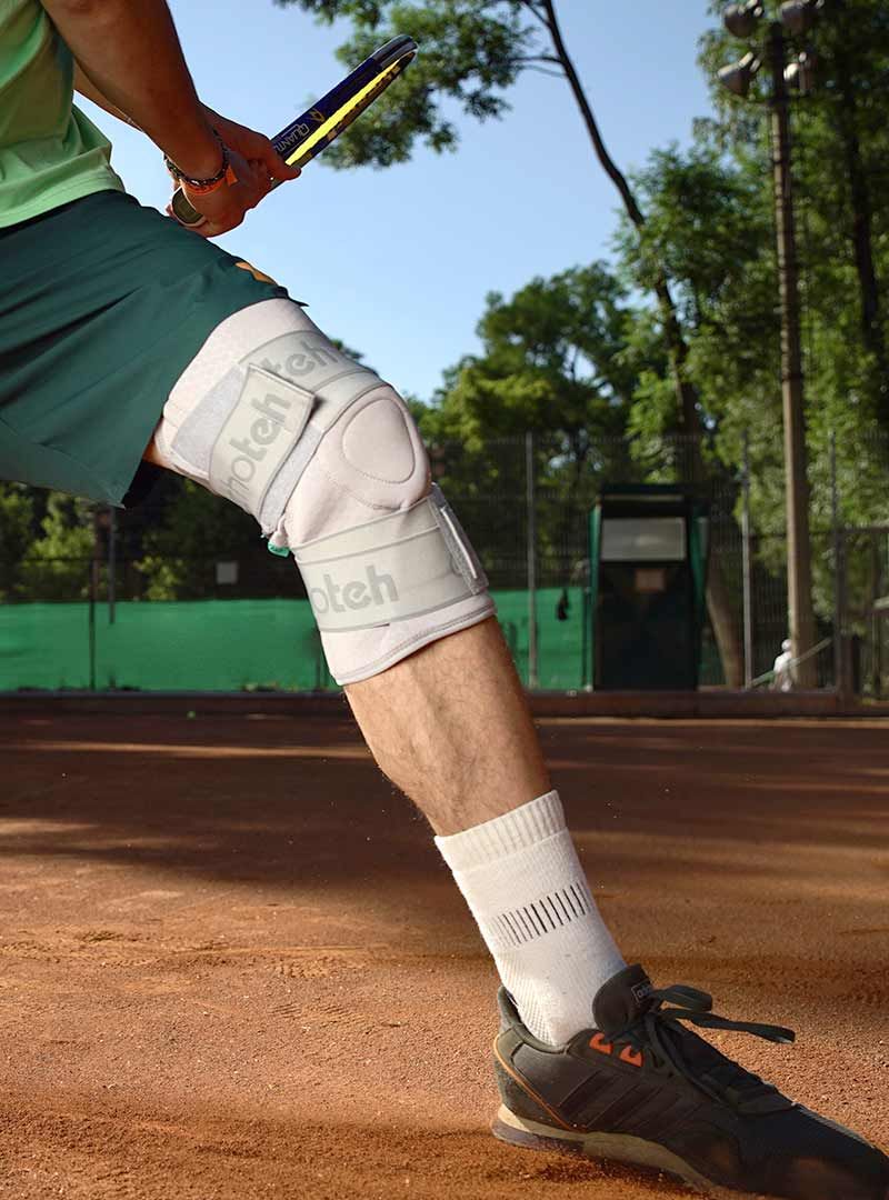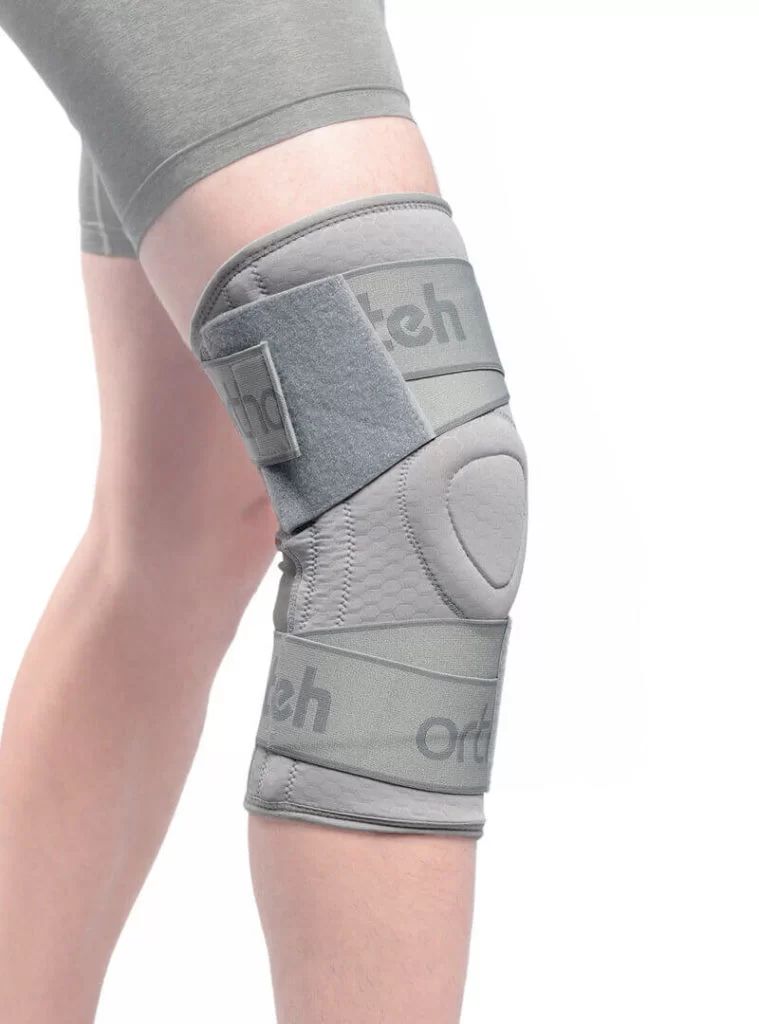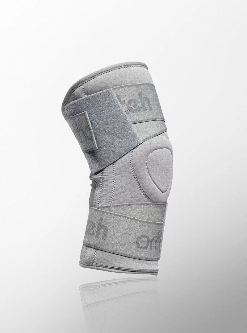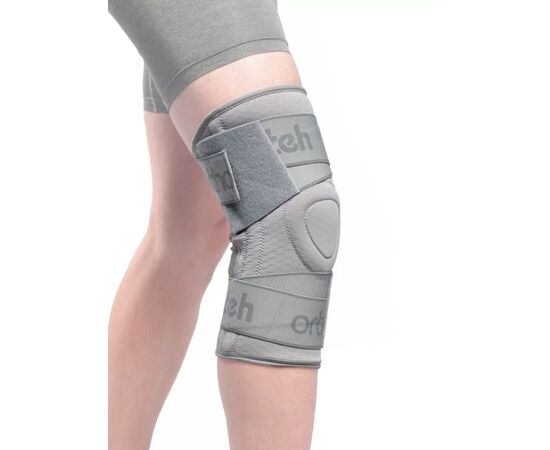 Наколінник Orthoteh Standard виготовлений з легкої та дихаючої еластичної тканини. Він надійно стабілізує коліно. Трапецієподібне кільце анатомічної форми охоплює колінну чашечку. Це забезпечує відмінну стабілізацію та комфорт. Колінний бандаж має чотири плоскі еластичні елементи, по два з кожного боку колінного суглоба. стабільну підтримку зв'язок.Вся конструкція утримується на місці і стабілізується двома оперізуючими гумками.Вони розташовані вище і нижче колінного суглоба.Внутрішня частина коліна