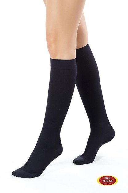 Компрессионный трикотаж серии PANI TERESA® TRAVEL польського производителя PANI TERESA MEDICA SA – это сочетание медицинской эффективности и высокого качества по приемлемой цене. Изделия данной серии специально разработаны для людей, которые много путешествуют. Внешне компрессионные гольфы PANI TERESA® TRAVEL SOCKS напоминают обычное изделие, но обладают структурой в виде полосок, а также выделенной частью пятки и пальцев для удобства в ношении. Широкая резинка предотвращает скатывание, гольфы приятны на ощупь и легко надеваются.