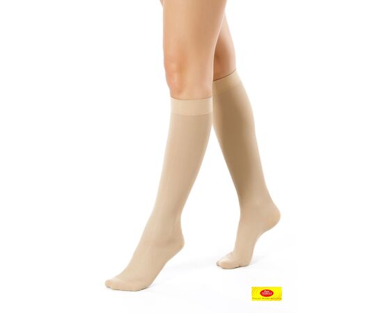 - Одеть изделие на всю длину, деликатно и равномерно, без чрезмерного растягивания вверх и без перекручивания. Компрессионный трикотаж не должен образовывать складок и пережимать область под коленом.