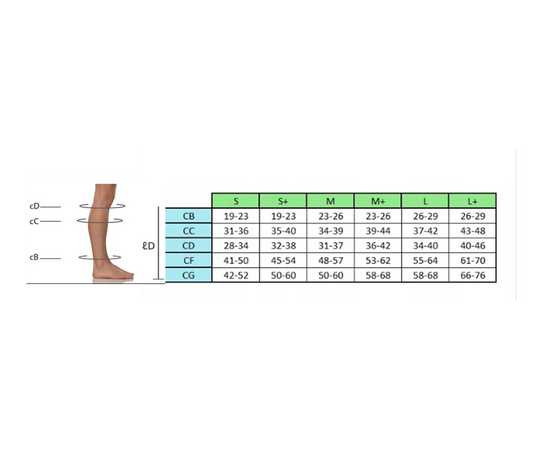 - Выберите размер, сравнив обхваты ног с приведенной ниже таблицей.