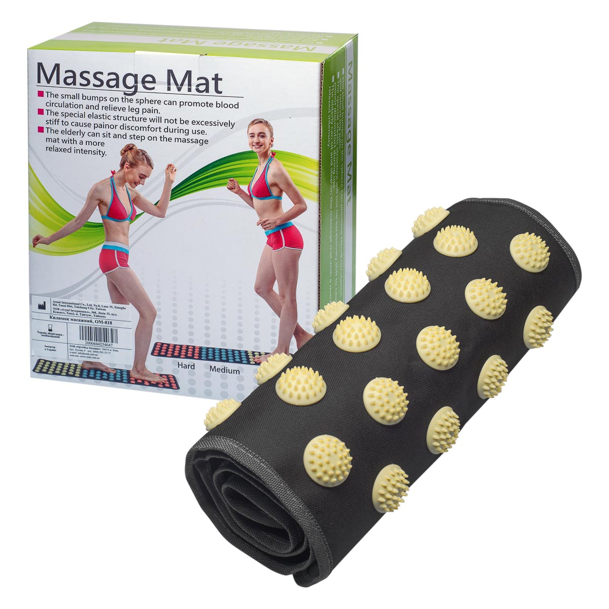 Массажный коврик OM-818 - это универсальный массажный коврик с цветными шипованными элементами для рефлексотерапии стоп, предназначенный для точечного массажа. Коврик стимулирует биологически активные точки, улучшает кровообращение и обмен веществ, способствует расслаблению мышц ног и общему оздоровлению организма, снимает усталость и является средством профилактики плоскостопия. Благодаря процедурам, которые осуществляют во время этого массажа, исчезают болевые синдромы и мышечные спазмы, улучшается кровообращение во всем теле и улучшается психоэмоциональное состояние.