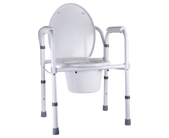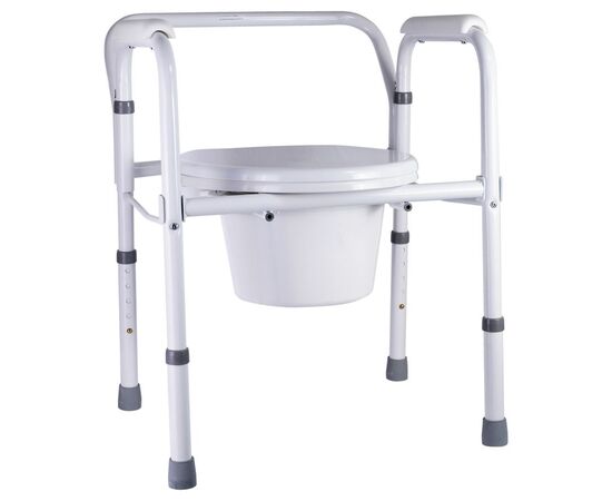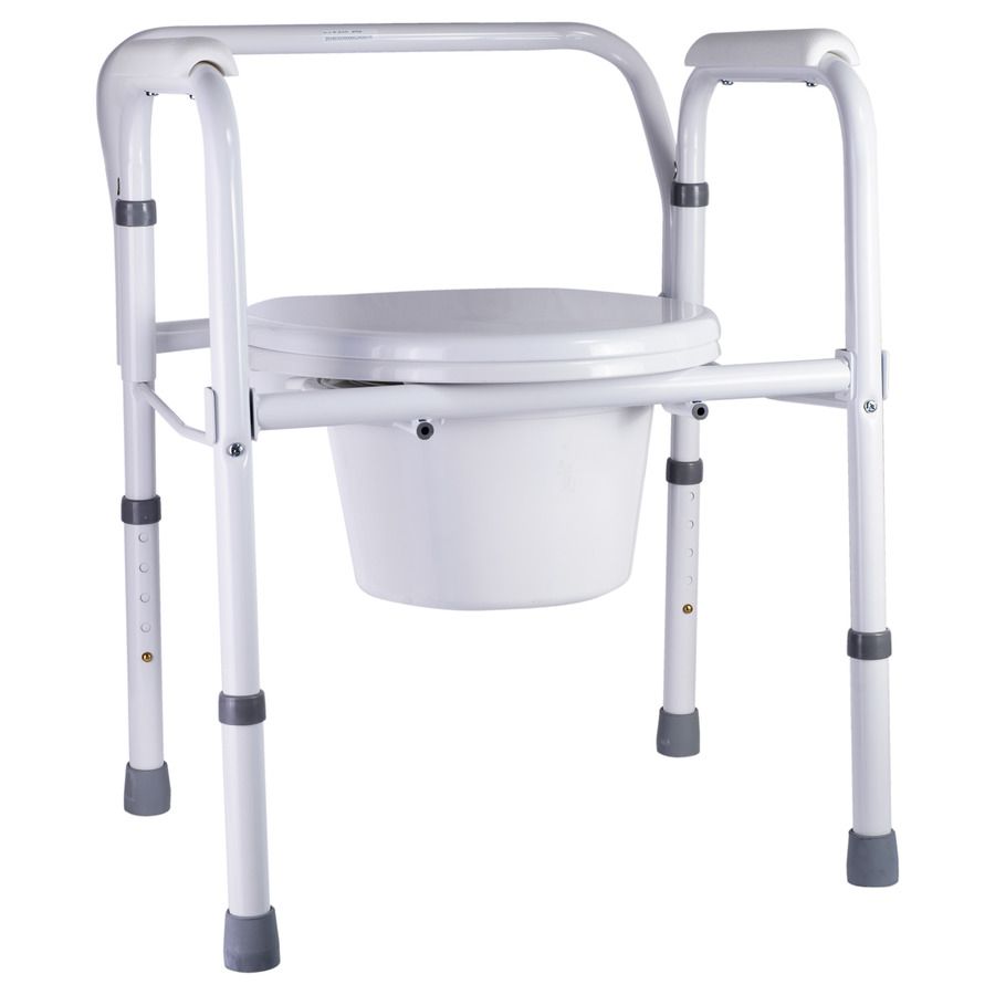 Предназначено для ухода за людьми с нарушениями опорно-двигательного аппарата и в период реабилитации. Имеет устойчивую стальную конструкцию. Съемная крышка, сиденье и ведро с отдельной крышкой изготовлены из прочного легко моющегося пластика, поручни покрыты мягким нескользящим полимерным материалом. Данная модель складная, что облегчает транспортировку.