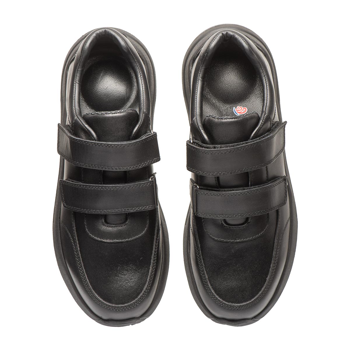 Демисезонная обувь изготовлена из натуральной кожи, классического черного цвета, обеспечивает максимальное удобство, поможет при профилактике и лечении плоскостопия любого типа или вальгусной деформации.
