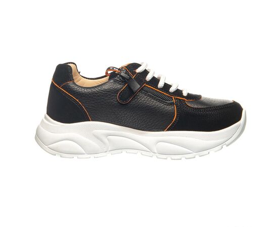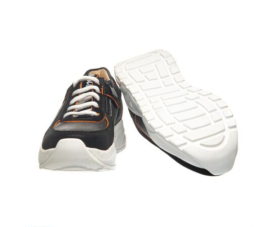 Theo Leo 0088 - кроссовки из натуральной кожи на модной подошве. Стелька и подкладка – натуральная кожа. Присутствует анатомический супинатор. Модель на молнии, декорирована шнурками и оранжевыми срезами. Подошва из термопластичной резины, не скользит и хорошо амортизирует.