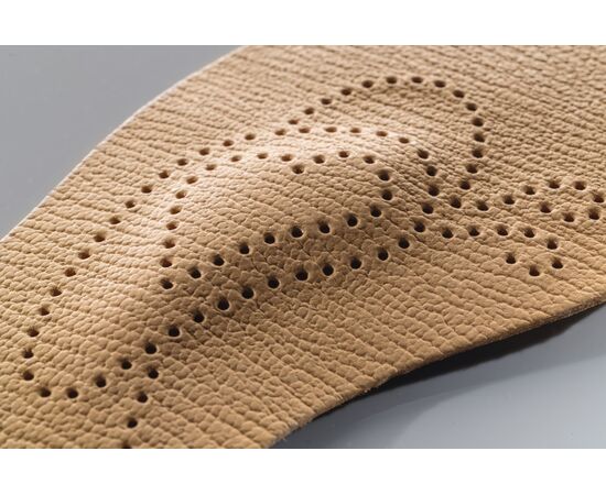 - Стелька снабжена мягкой латексной метатарзальной подушкой (пелотом) - специальным возвышением в центральной области полустельки, которое приподнимает и поддерживает поперечный свод стопы, удерживает переднюю часть стопы в анатомически правильном положении, предотвращает боль и жжение;