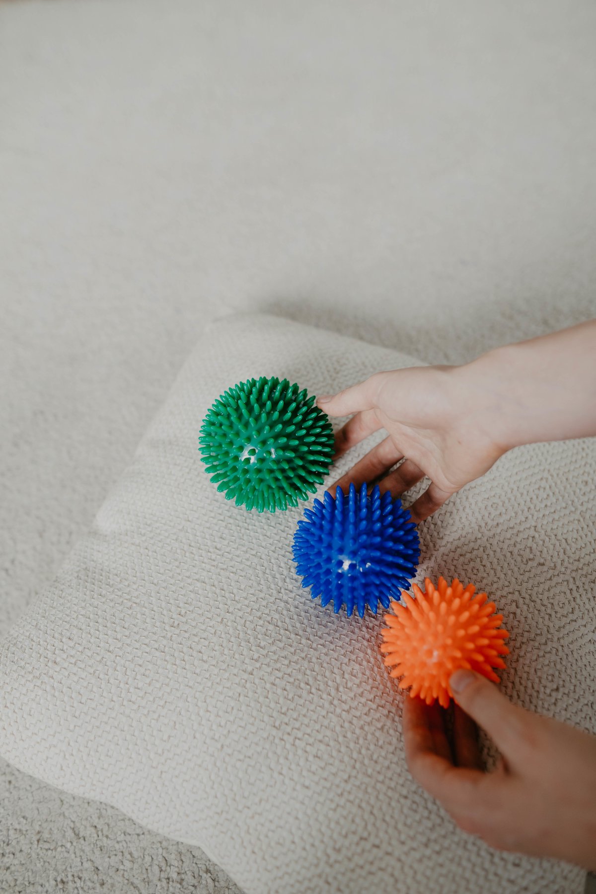 Зарядка с использованием такого игольчатого мячика очень эффективна для коррекции неправильного развития стоп у малышей (плоскостопия и других деформаций детской стопы). Такие массажные мячики хорошо известны мамам как прекрасный инструмент для тренировки детских пальчиков, для их подготовки к школьным нагрузкам. Их используют для развития мелкой моторики как у детей, так и в реабилитационный период после инсульта. Работая такими мячиками, как эспандерами, можно легко накачать кисти рук.