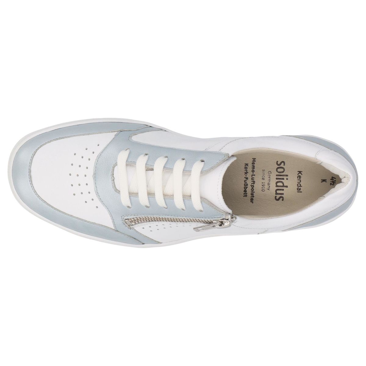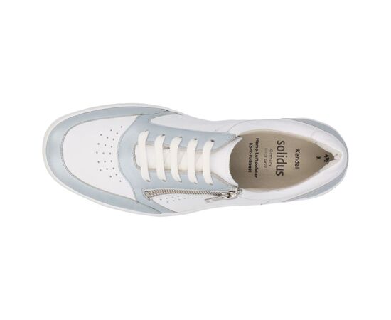 Мокасины Solidus Kendal - гармоничное сочетание лаконичного дизайна и оптимального комфорта. Изготовлены из высококачественной кожи белого цвета с голубыми вставками, идеально подходит для повседневной носки. Новая модель мокасинов Kendal Solidus шириной K обеспечивает комфортную и анатомически правильную посадку, предлагают достаточно свободного объема, чтобы стопа чувствовала себя комфортно, особенно это касается широкой стопы. А практичная молния дает возможность с легкостью надевать и снимать обувь без лишних движений. Это повседневная классика, которая подходит и под casual и под классический стиль.