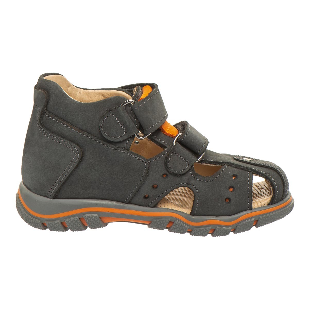 Ортопедические босоножки для мальчиков, графитовый/оранжевый (арт. LEO-T007 SM), Theo Leo (Турция)