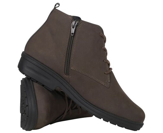 Ортопедические ботильоны Kathy от Ganter изготовлены из мягкой нубуковой кожи, стильные, простые и комфортные. Эти высокие ботинки темно-коричневого цвета комфортной ширины K придают женственный силуэт даже широкой стопе. Для практичности эта удобная обувь имеет застежку-молнию и шнуровку. Прочная подошва из TPU с характерным профилем обеспечивает хорошее сцепление и устойчивость к скольжению. Удобная и мягкая съемная стелька гарантирует первоклассный комфорт во время ношения, а также ее можно заменить собственными индивидуальными стельками. Kathy, женственные зимние ботинки, согреют вас в холодные дни благодаря уютной подкладке из овчины.