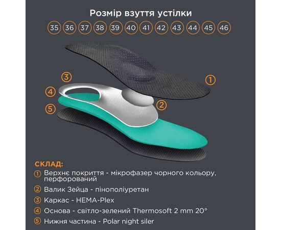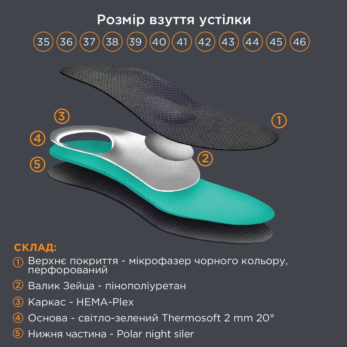 - основа стелек изготовлена из материала Thermosoft 2 мм для уменьшения нагрузки на суставы ног и позвоночник