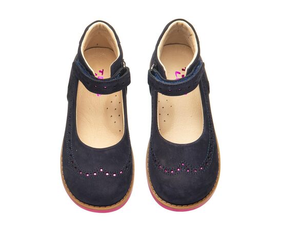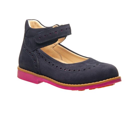 Theo Leo 0090 - стильные и комфортные туфли из натурального нубука на подошве розового цвета. Модель декорирована перфорацией. Фиксируются на ноге с помощью липучки. Стелька и подкладка – натуральная кожа. Подошва - термопластичная резина, нескользящая, с каблуком Томаса, хорошо амортизирующая. Отлично подойдут к школьной форме.