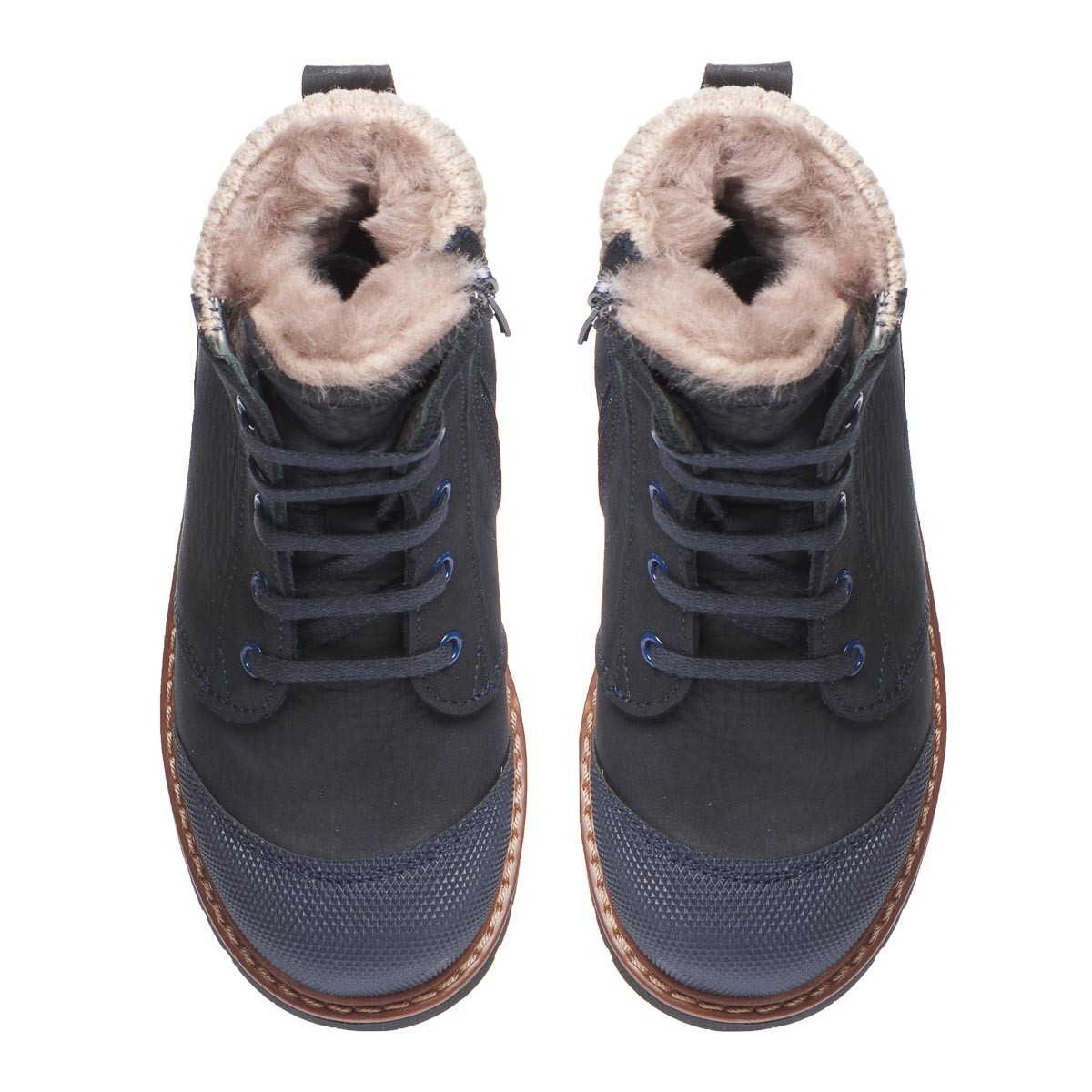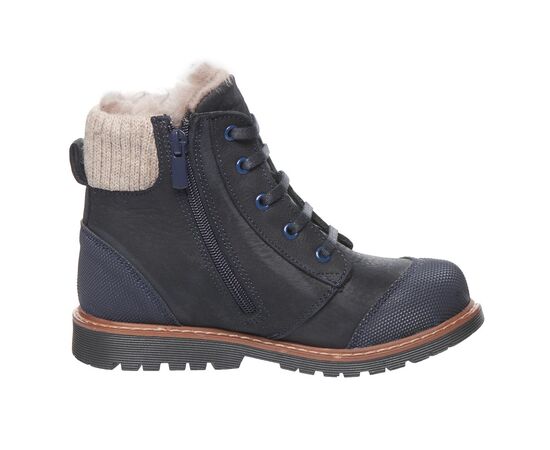 Theo Leo 0141 - стильные зимние ботинки для мальчика выполнены из натуральной кожи и декорированы на носке и пятке прочным материалом во избежание стирания или царапин. Задник ботинка декорирован вязаной вставкой. Модель на молнии, декорирована шнурками. Подкладка и стелька - из натурального меха, с супинатором. Подошва - с каблуком Томаса, из термопластичной резины, хороша на любых поверхностях и при любых температурах, не скользит и амортизирует.