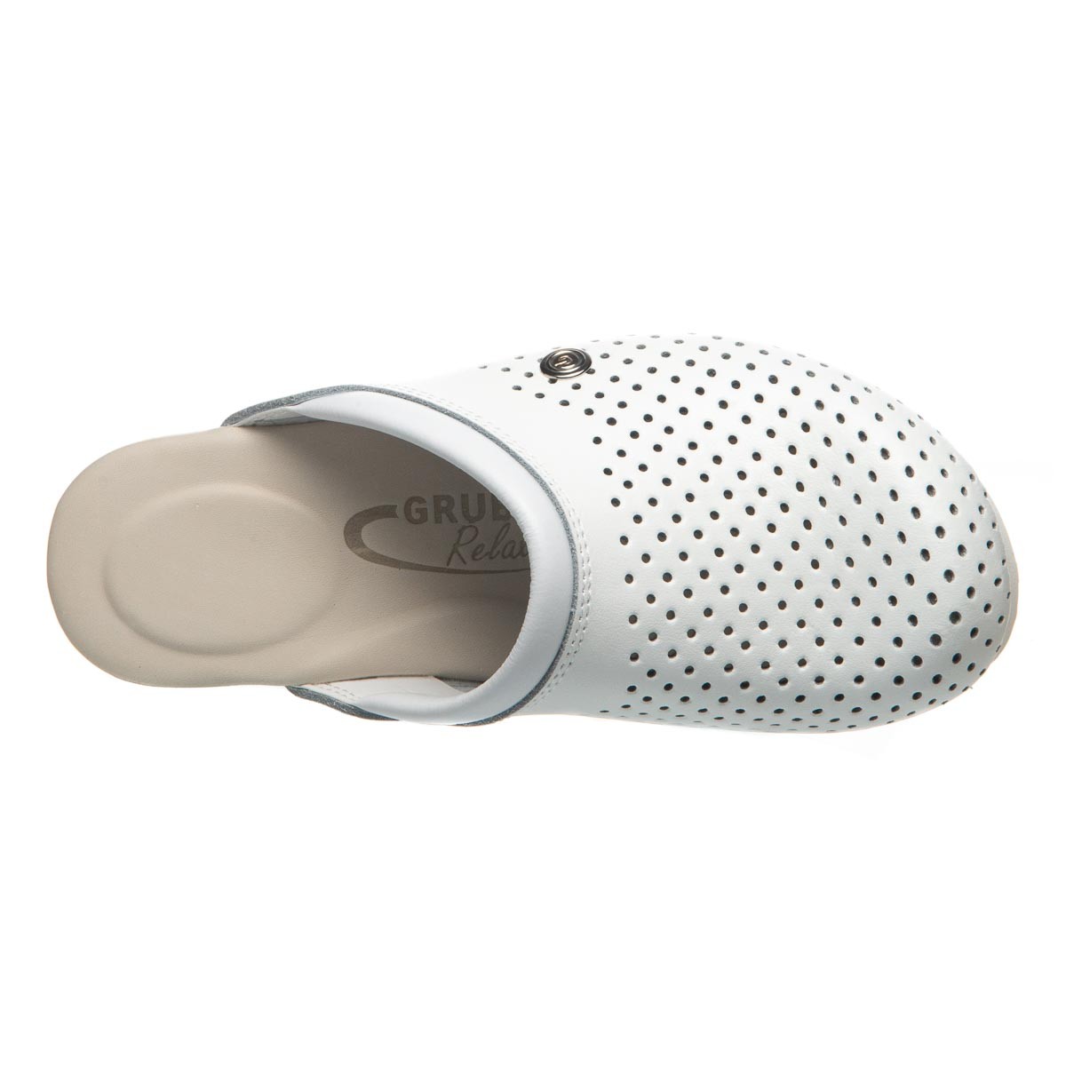 Обувь Grubin изготавливается исключительно из экологически чистых материалов, которые безопасны для здоровья человека и окружающей среды в тесном сотрудничестве с врачами-ортопедами. Серия Relax – это профессиональная обувь, которая отличается исключительной легкостью и комфортом. Слой из пены "с эффектом памяти" нанесен на 3 см подошву из EVA-материала. Идеальная высота подошвы в 4 см способствует правильному положению тела и равномерному распределению веса по всей стопе.