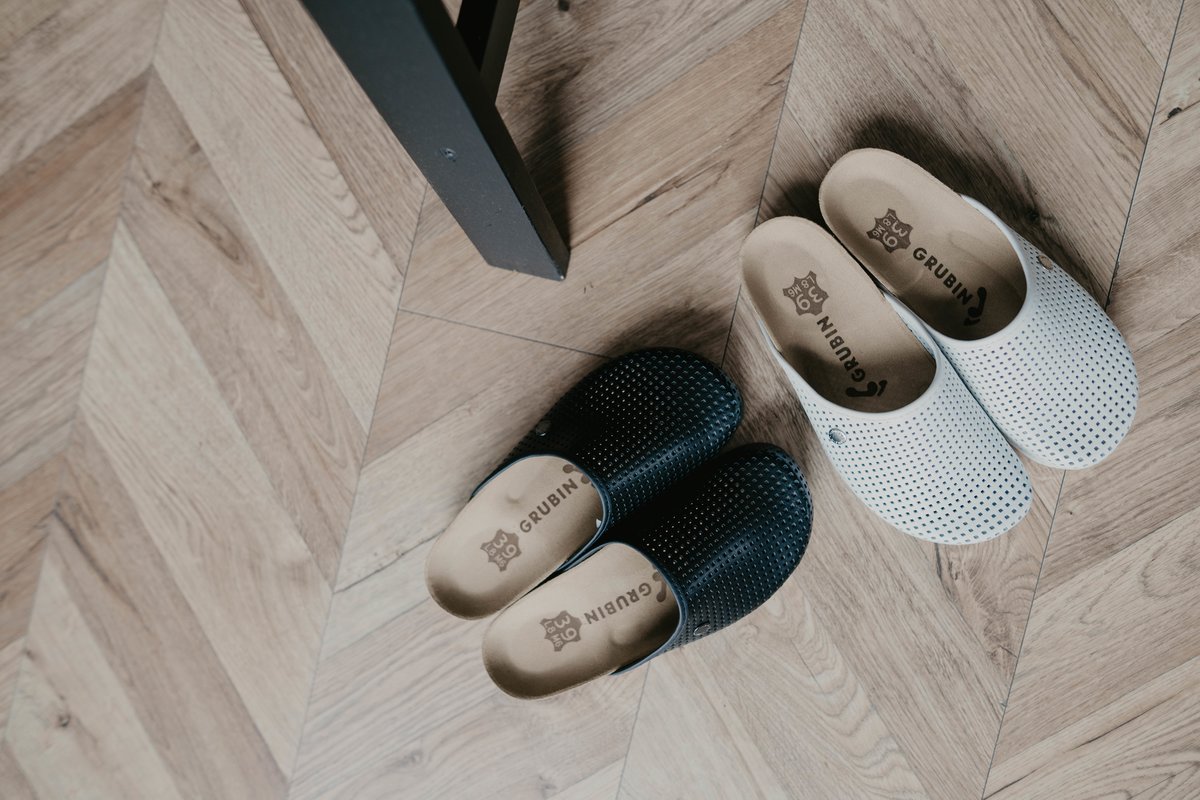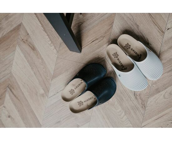 Обувь Grubin изготавливается исключительно из экологически чистых материалов, которые безопасны для здоровья человека и окружающей среды в тесном сотрудничестве с врачами-ортопедами. Материалом подошвы служит смесь коры Средиземноморского пробкового дуба с натуральным латексом, за счет чего подошва прочная, гибкая и обладает отличными амортизационными свойствами для комфортной ходьбы. Верхний слой стельки – велюровая кожа высочайшего качества, которая впитывает влагу, не скользит и не натирает. Низ подошвы из высококачественной микропористой резины обеспечивает устойчивый контакт с твердыми поверхностями и долговечен в носке. Материалы верха из натуральных и искусственных материалов специально обработаны изнутри, чтоб избежать натирания кожи стопы. Все детали вырезаются и крепятся вручную.