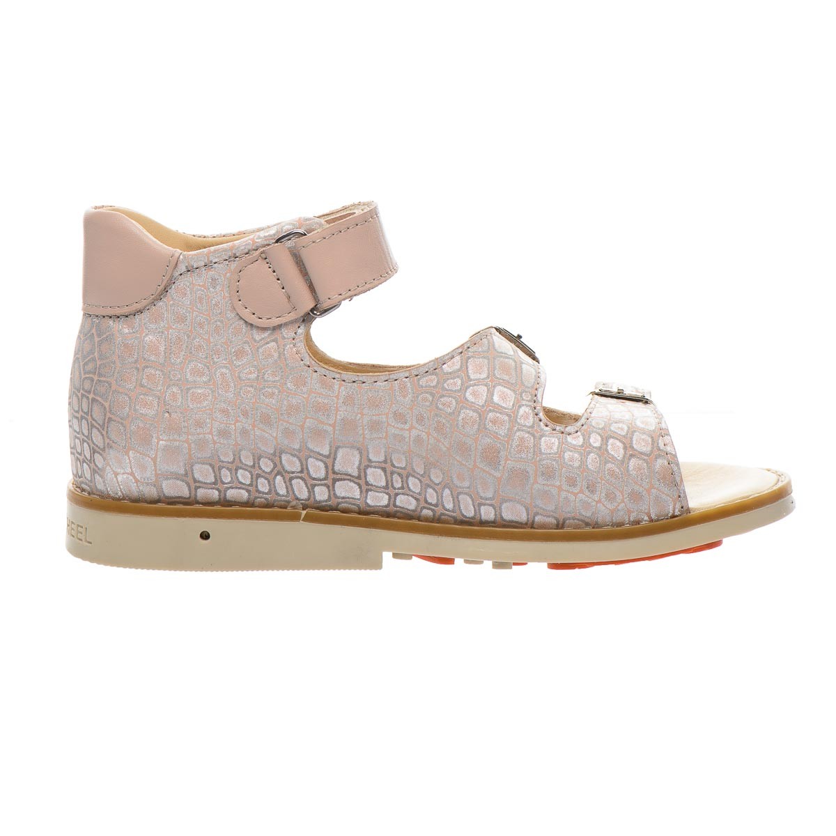 THEO LEO 1132 - босоніжки виконані з натуральної шкіри золотисто-рожевого кольору з принтом "рептилія". Устілка з анатомічним супінатором і підкладка - натуральна шкіра. Одягаються і фіксуються за допомогою липучки і двох застібок. Підошва з термопластичної гуми з каблуком Томаса - не ковзає і добре амортизує. Завдяки каблуку Томаса дитяча стопа не буде завалюватися усередину.