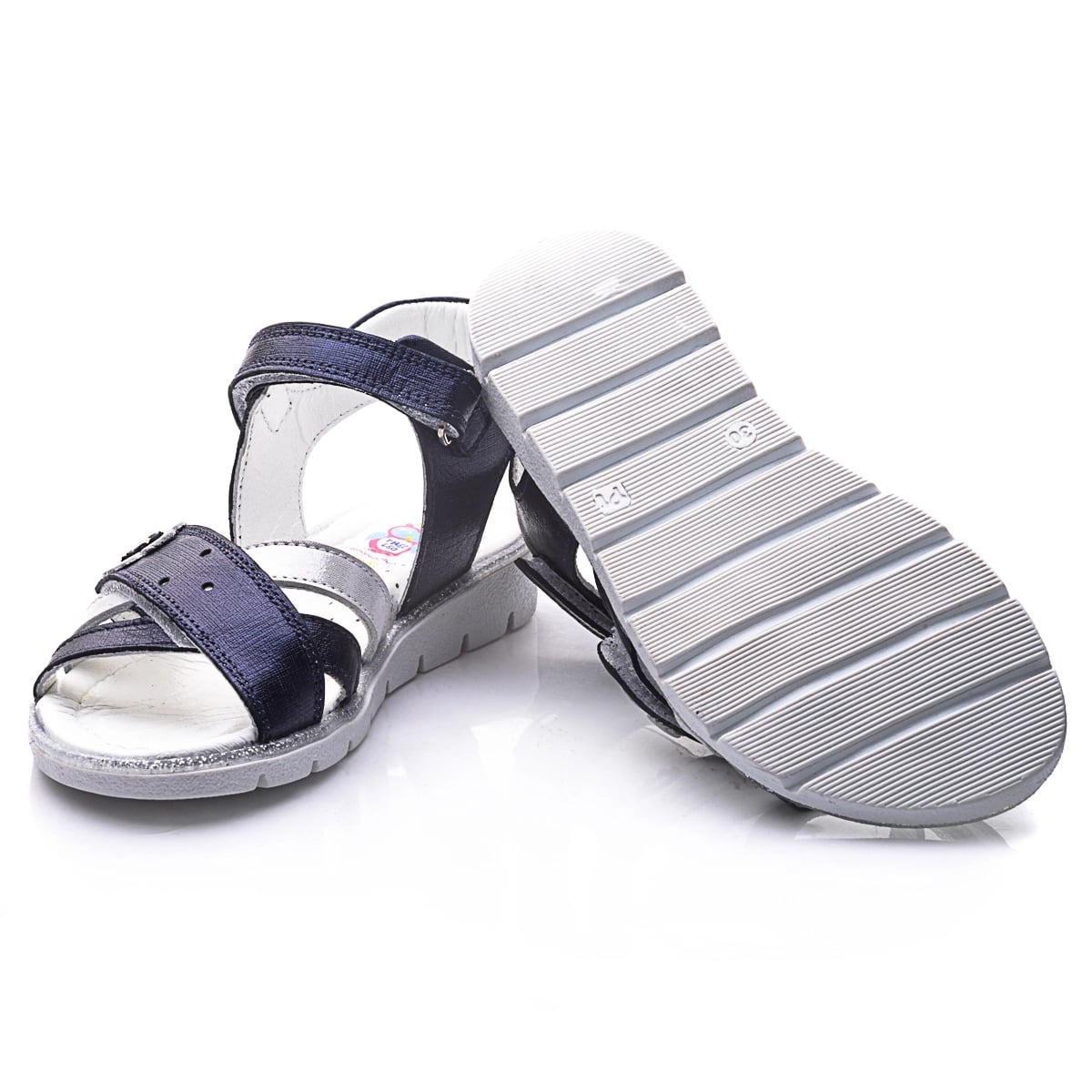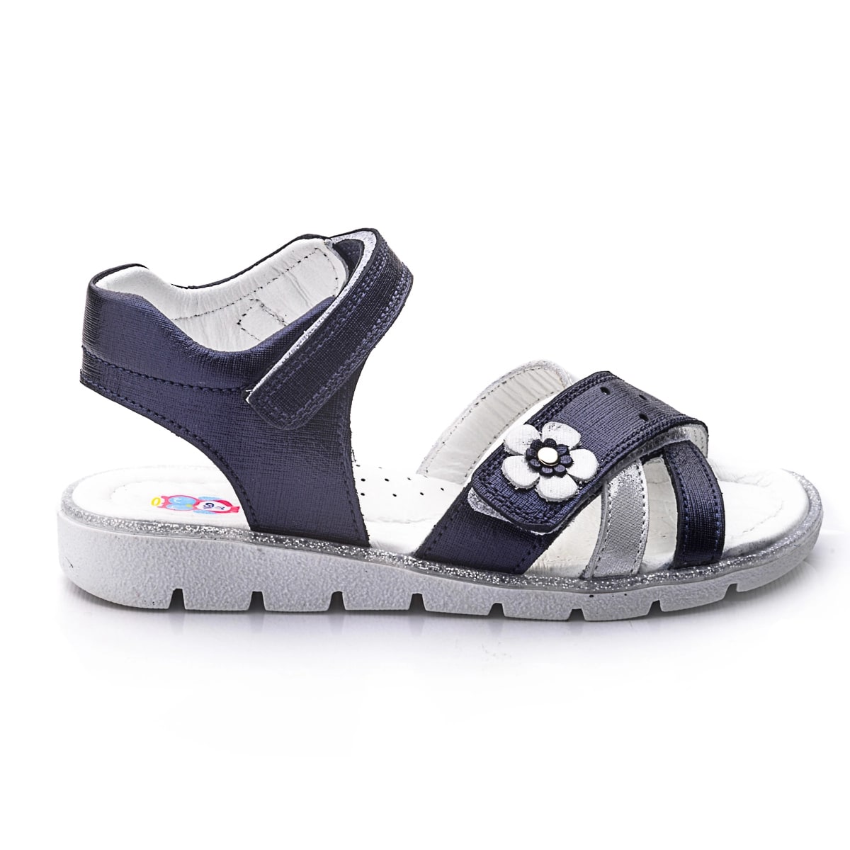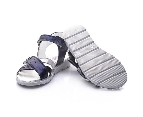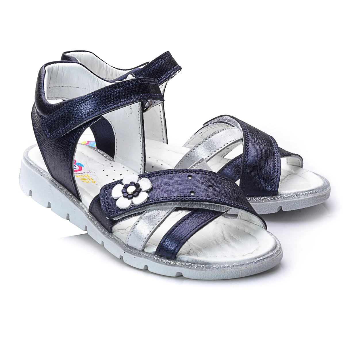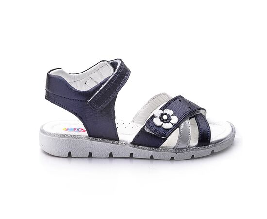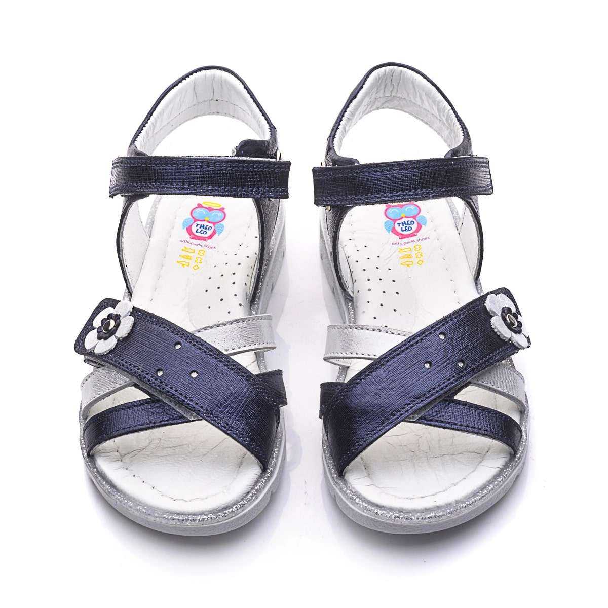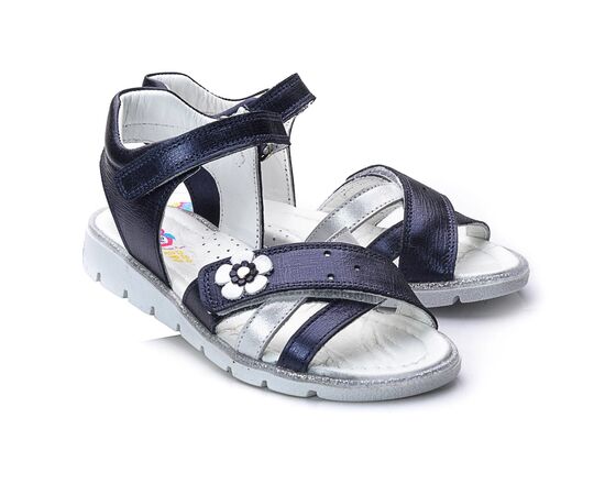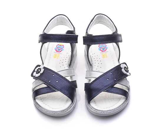 THEO LEO 732 элегантные детские сандалии выполнены из высококачественной кожи темно-сине цвета с сатиновым эффектом, украшены полоской из серебристой кожи и серебристым цветочком. С помощью двух надежных застежек-липучек можно отрегулировать полноту ножки, надежно фиксировать обувь на ноге и легко снимать, фиксируются на щиколотке с помощью липучки. Удобная стелька с анатомическим супинатором обеспечивает максимальный комфорт для каждого шага. Они идеально подойдут для летних прогулок, праздничных мероприятий и в повседневной жизни.