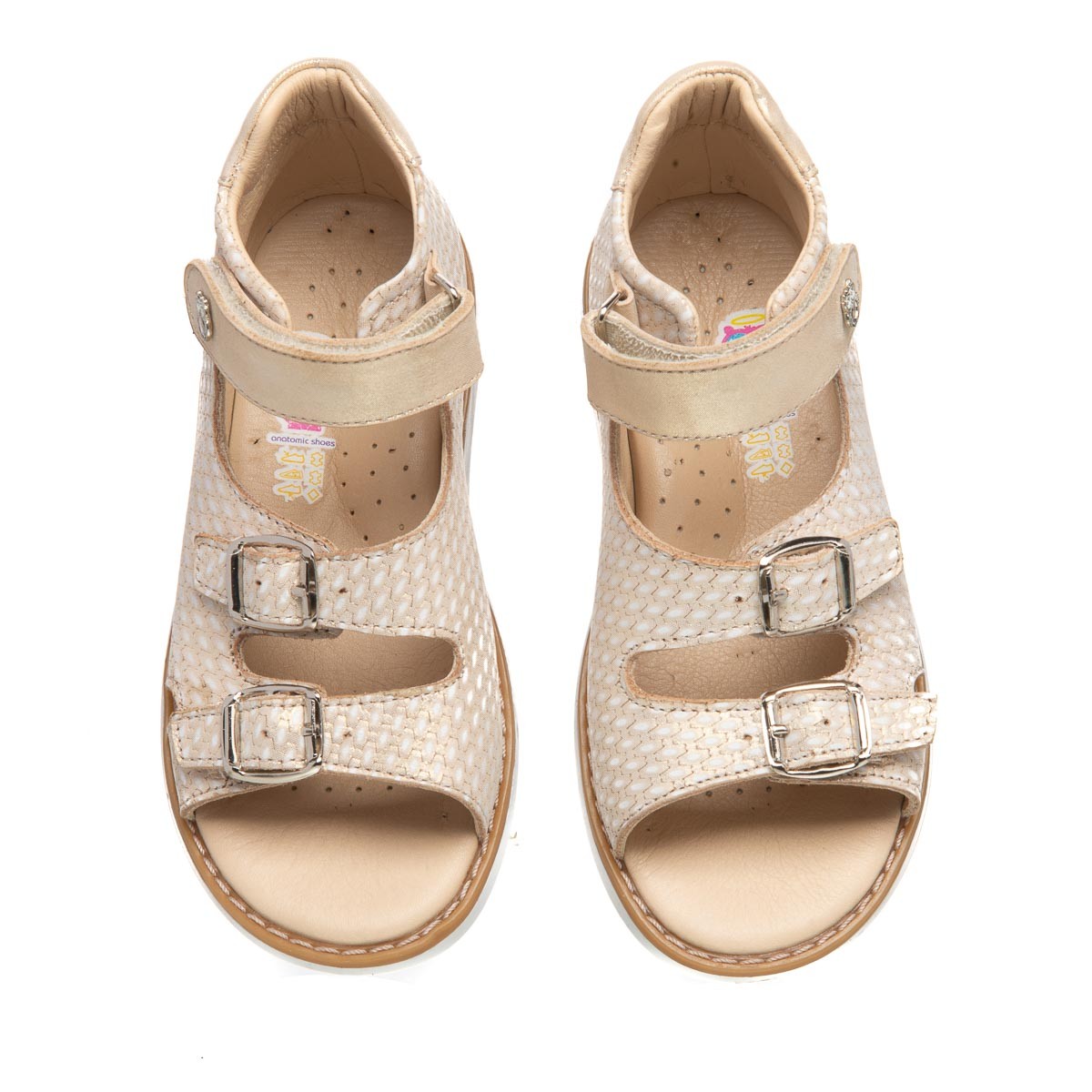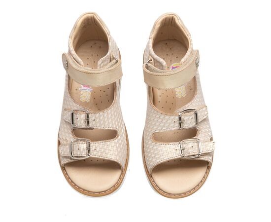 Theo Leo 0072 - летние босоножки для девочки из натуральной кожи бежевого цвета. Удобная фиксация на ноге с помощью липучек и застежек. Подкладка и стелька с анатомическим супинатором - натуральная кожа. В модели присутствует жесткая пятка и каблук Томаса. Подошва - термопластиковая резина, не скользящая, хорошо амортизирует при ходьбе. Благодаря каблуку Томаса детская стопа не будет заваливаться внутрь.