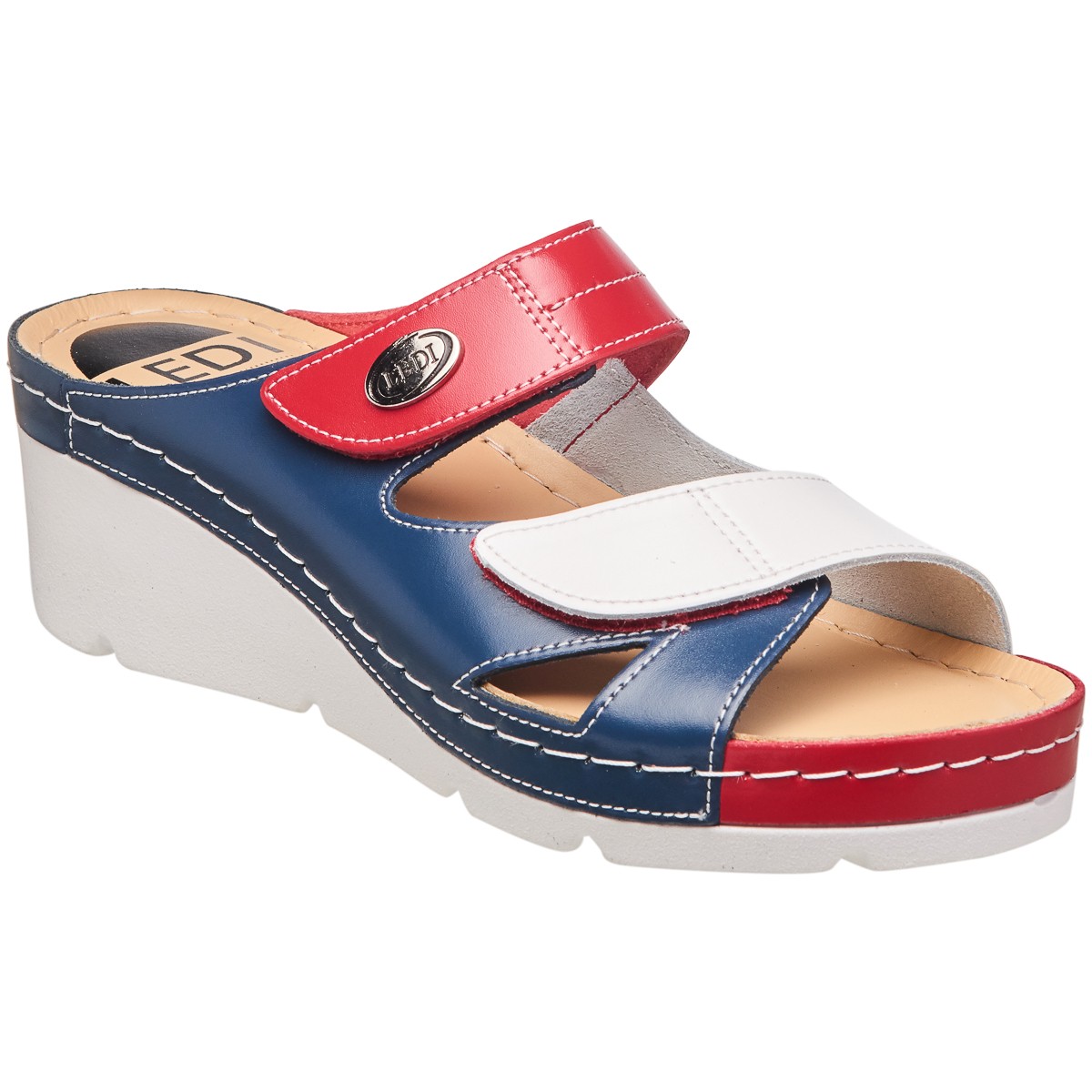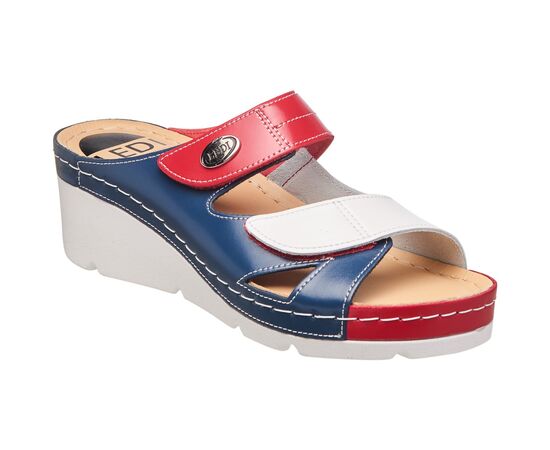 Шлепанцы анатомические LEDI 108 - стильные и комфортные, на танкетке и липучках для регулировки полноты. Они поддержат анатомические своды стопы, защитят ноги от переутомления, обеспечат комфорт, легкость в стопах и спине.