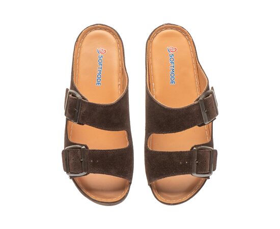 Почувствуйте комфорт и стиль с этими шлепанцами Softmode - шикарными и удобными тапочками широкого кроя, разработанными для легкого летнего ношения. Эти шлепанцы коричневого цвета из натуральной замши сочетают в себе модный стиль и функциональность для комфорта в течение всего дня. Разработанные для просторной и удобной посадки, идеально подходят для широких ног. Двойная застежка обеспечивает регулировку по всей стопе для надежной и индивидуальной посадки. Стильные пряжки добавляют модного штриха дизайна. Мягкая кожаная стелька с мягкой подкладкой и воздухопроницаемостью для повышенного комфорта в течение дня. Гибкая подошва легкая и амортизирует для легкого движения и стабильности.