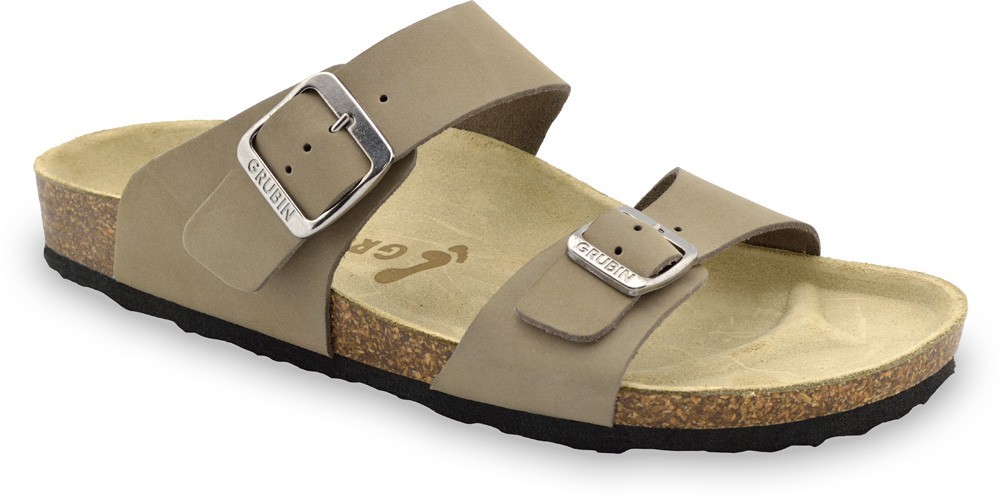 Обувь Grubin изготавливается исключительно из экологически чистых материалов, которые безопасны для здоровья человека и окружающей среды в тесном сотрудничестве с врачами-ортопедами. Материалом подошвы служит смесь коры Средиземноморского пробкового дуба с натуральным латексом, за счет чего подошва прочная, гибкая и обладает отличными амортизационными свойствами для комфортной ходьбы. Верхний слой стельки – велюровая кожа высочайшего качества, которая впитывает влагу, не скользит и не натирает. Низ подошвы из высококачественной микропористой резины обеспечивает устойчивый контакт с твердыми поверхностями и долговечен в носке. Материалы верха из натуральных и искусственных материалов специально обработаны изнутри, чтоб избежать натирания кожи стопы. Все детали вырезаются и крепятся вручную.