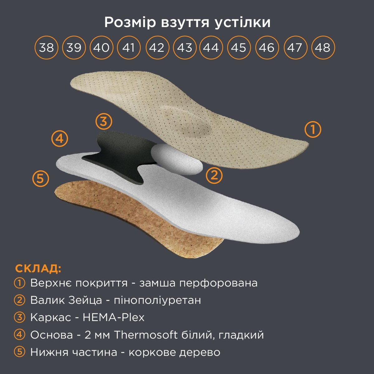 - обратная, нижняя часть стельки в зоне пятки и средней части стопы покрыта пробковым экологичным материалом