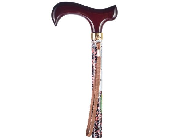 Трость предназначена для дополнительной опоры при ходьбе для пожилых людей, людей с незначительными нарушениями опорно-двигательного аппарата и в период реабилитации после операций, болезней и травм. Трость декорирована изящным рисунком и имеет ремешок, который позволяет повесить ее на запястье для удобной транспортировки.