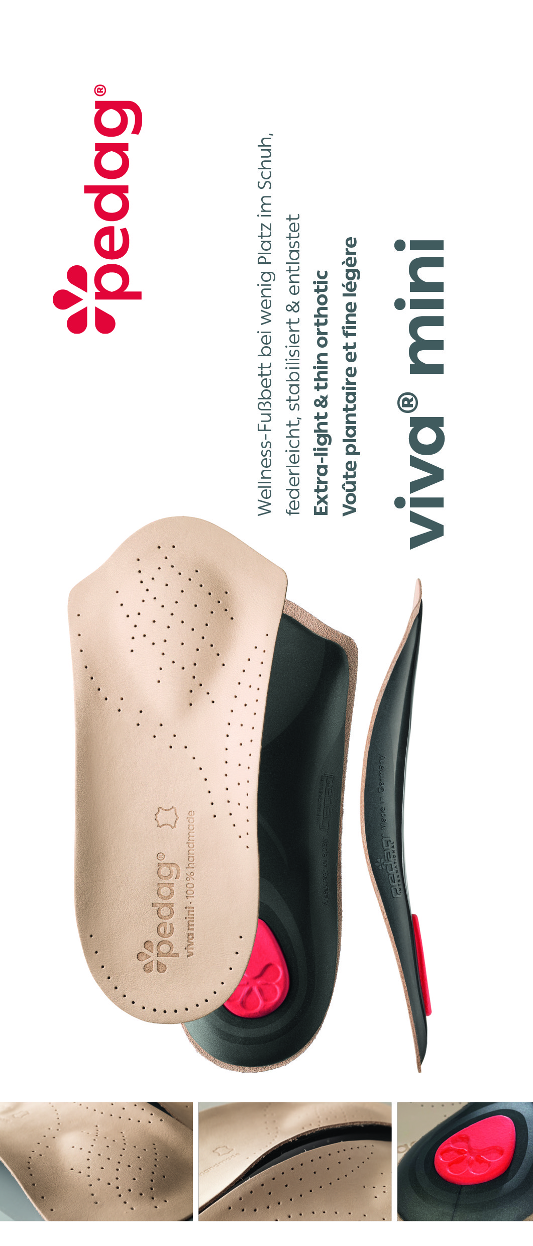 - Конструкция полустельки PEDAG VIVA® Mini анатомической формы, эффективно поддерживает продольный свод стопы и предотвращает симптомы усталости ног;