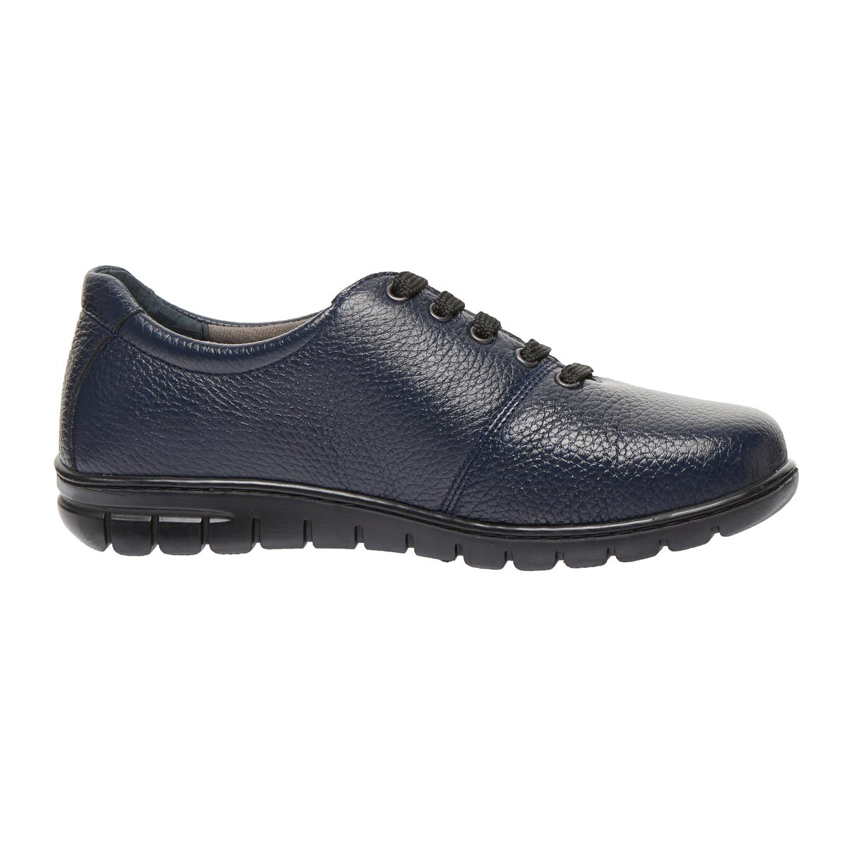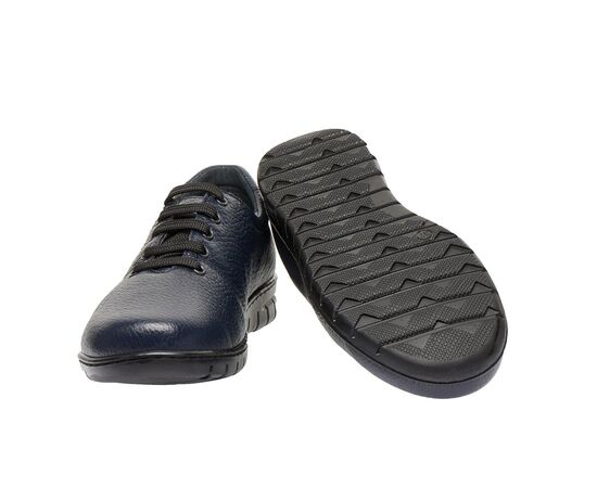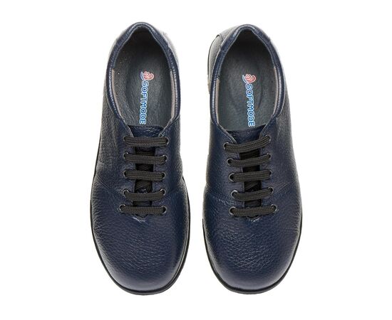 Удобная демисезонная обувь изготовлена из натуральной кожи, темно синего цвета, обеспечивает максимальное удобство, поможет при профилактике и лечении плоскостопия любого типа или вальгусной деформации.