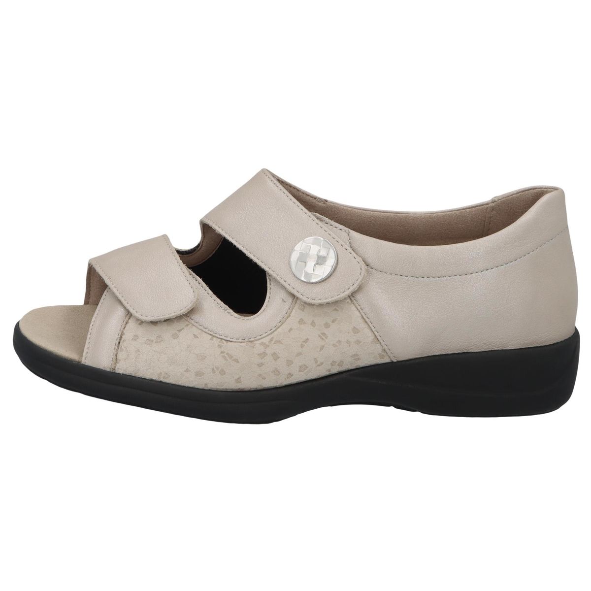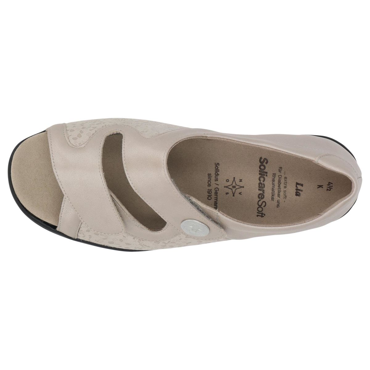 Босоножки Solidus Lia имеют ширину размера H, что делает их идеальными для людей с широкими стопами. Они созданы для оптимального комфорта в течение долгих летних дней. Босоножки имеют удобную застежку на липучке. Благодаря низкой высоте каблука конструкция обеспечивает равномерное распределение веса и расслабленное, здоровое положение стопы.