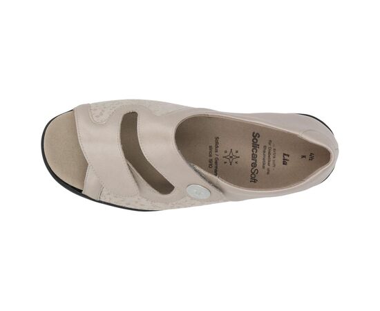 Женские босоножки Lia от Solidus, серии Solicare Soft - красивые женские босоножки шириной K с двумя застежками-липучками и закрытой пяткой. Изготовлены из натуральной кожи со стрейч вставкой, поддерживают свод стопы для профилактики и лечения плоскостопия. Особенность моделей Solicare Soft - это обувь с материалами которые растягиваются в местах чрезмерного давления ("косточка") или полностью мягкий верх из сверхмягкой кожи. Особого внимания заслуживает воздухопроницаемая, нежная на ощупь подкладка с антисептической пропиткой, что обеспечивает постоянный комфортный климат для ног. Лучший выбор для чувствительных ног. Сдержанный дизайн обуви сочетается как с повседневной одеждой, так и с более изысканными образами для особых случаев