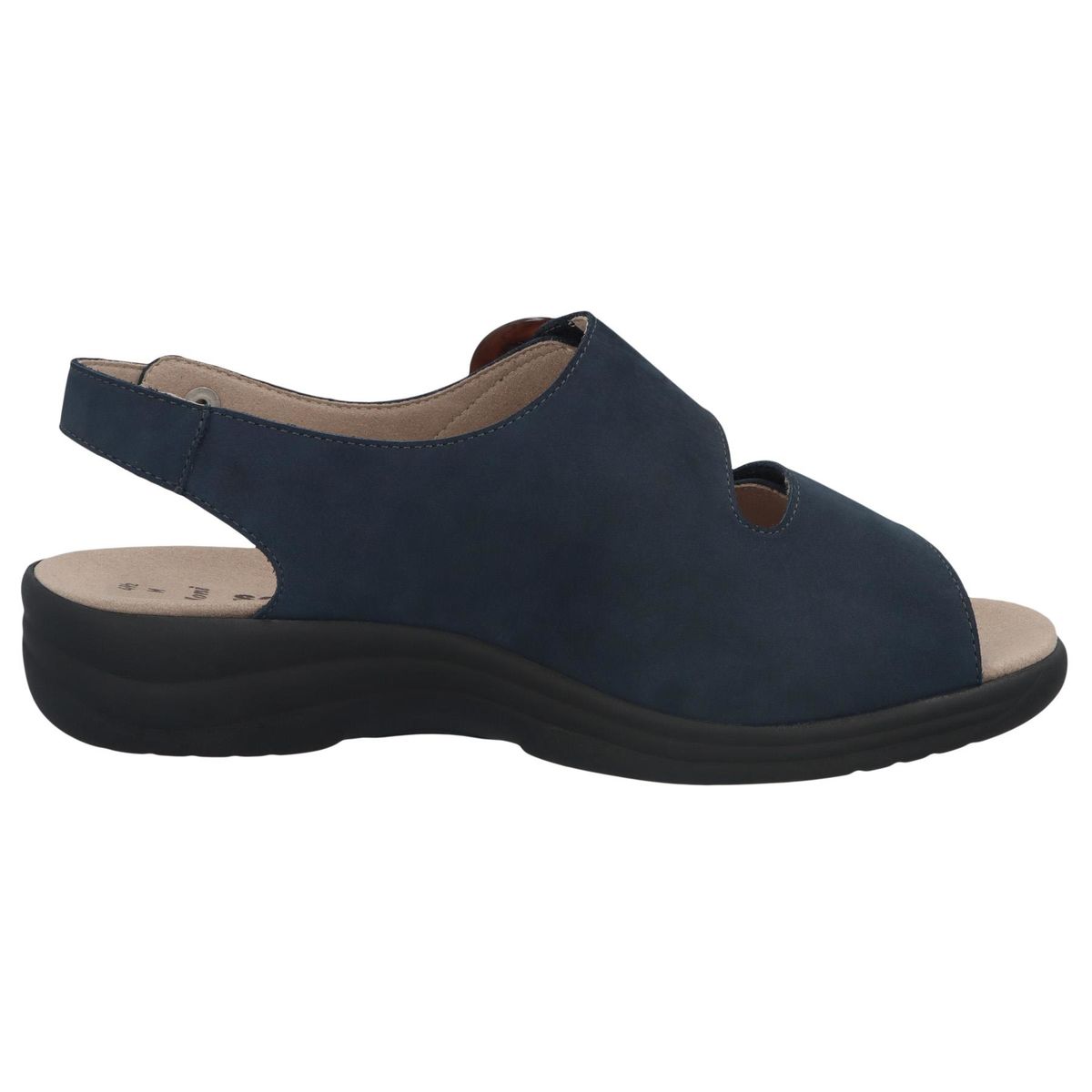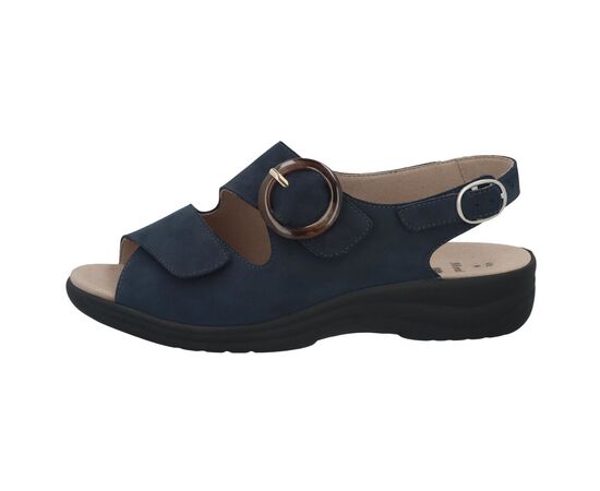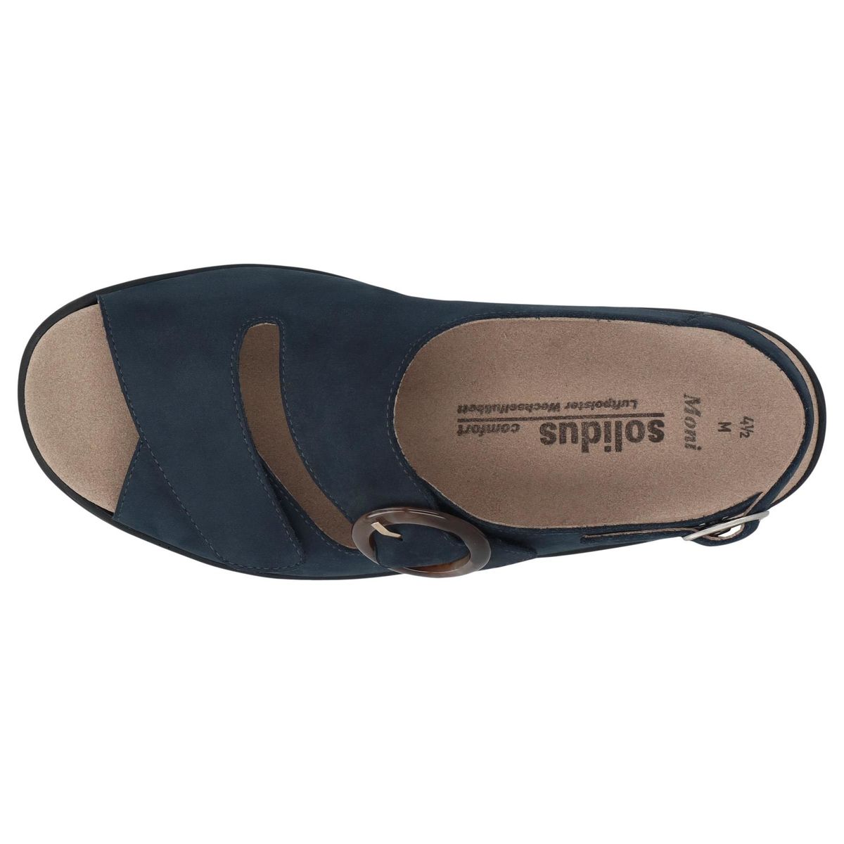 Босоножки Moni от Solidus темно синего цвета, это модный вариант для всех женщин, следящих за модой. Благодаря современному дизайну и широкой дополнительной ширине M, они особенно подходят для широких ног. Удобные босоножки можно индивидуально подогнать по ноге, благодаря двум ремешкам на липучках и регулируемому ремешку на пятке. Прочная подошва из полиуретана и мягкая микрофибра внутри обеспечивают приятные ощущения при ношении.