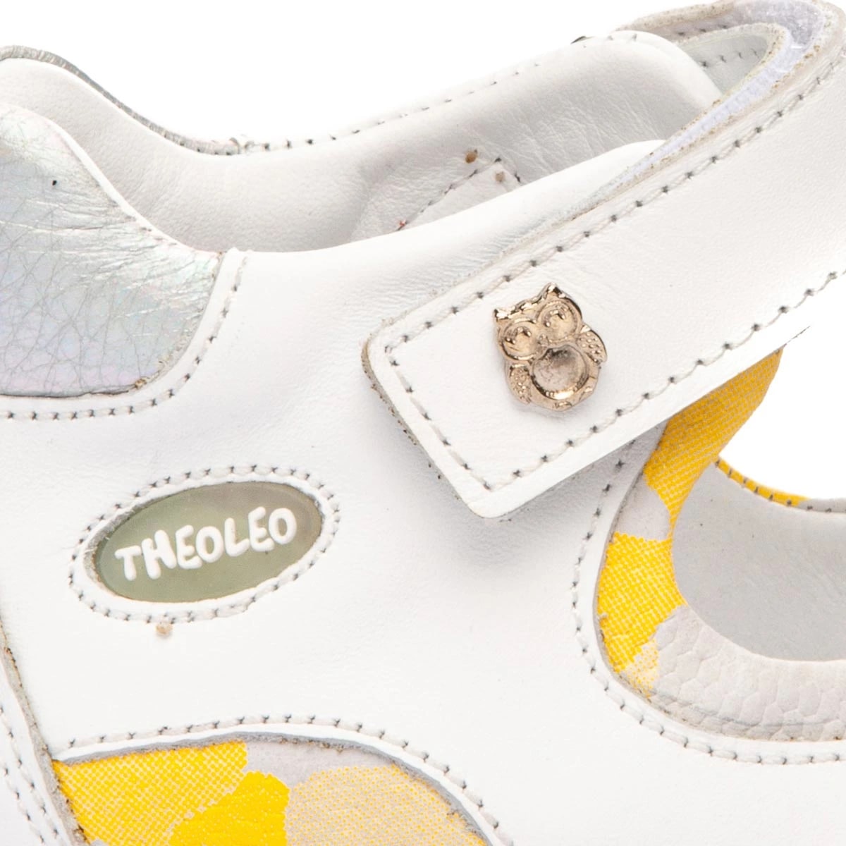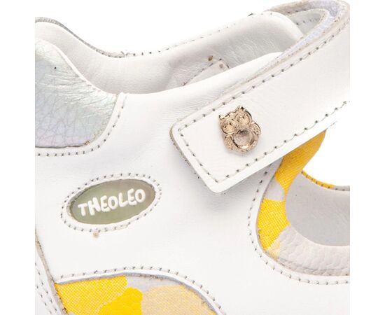 THEO LEO 1226 ніжні дитячі босоніжки виконані з високоякісної шкіри в біло кольорі, декоровані жовтими вставками. За допомогою двох надійних застібок-липучок можна відрегулювати повноту ніжки, надійно фіксувати взуття на нозі та легко знімати, фіксуються на щиколотці за допомогою липучки. Зручна устілка з анатомічним супінатором забезпечує максимальний комфорт для кожного кроку. Вони ідеально підійдуть для літніх прогулянок, святкових заходів та в повсякденному житті.